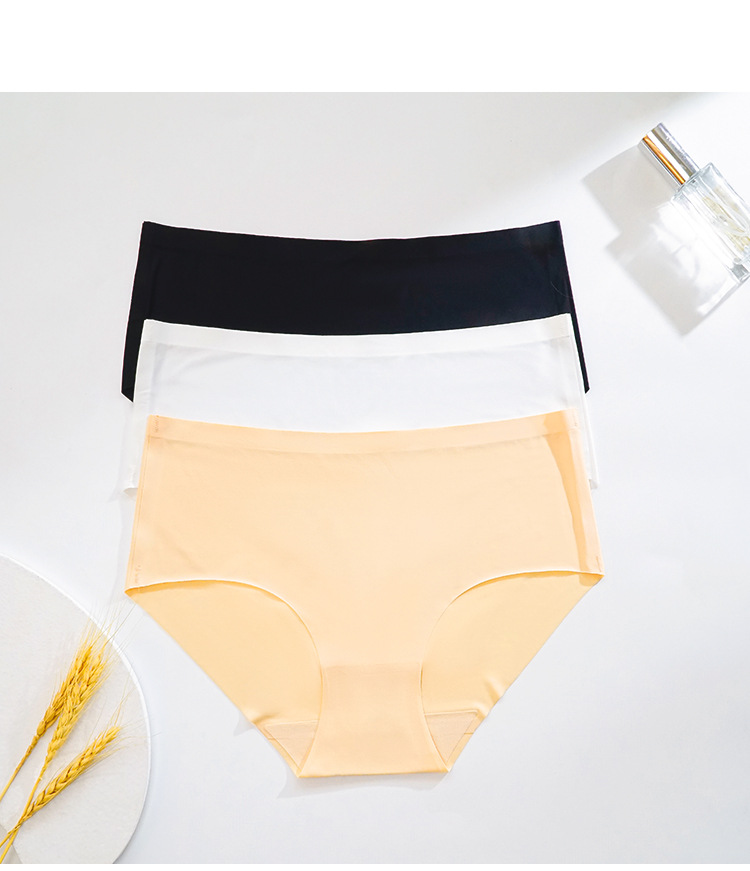 Mid High Waist Women Ice Silk Underwear Full Hip Cotton Crotch Comfortable Seamless Hip Lifting Briefs Women