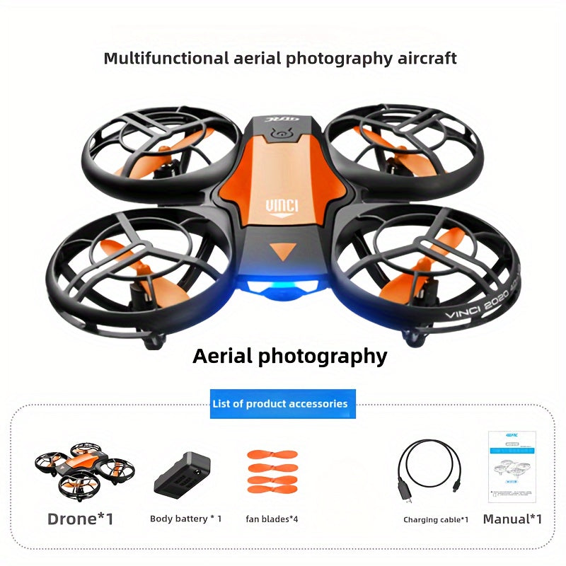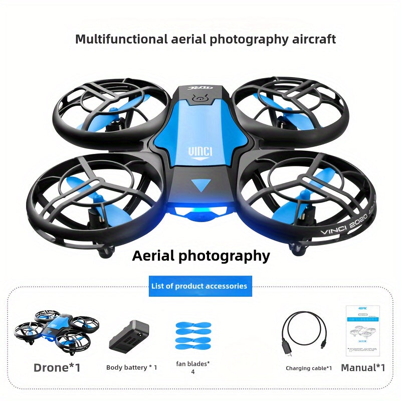 Mini avion de photographie aérienne haute définition à détection de gestes, protection complète, trois modes de contrôle au choix : application mobile, geste et télécommande, avec 4 hélices de rechange, sac de rangement et boîte de commande par correspond