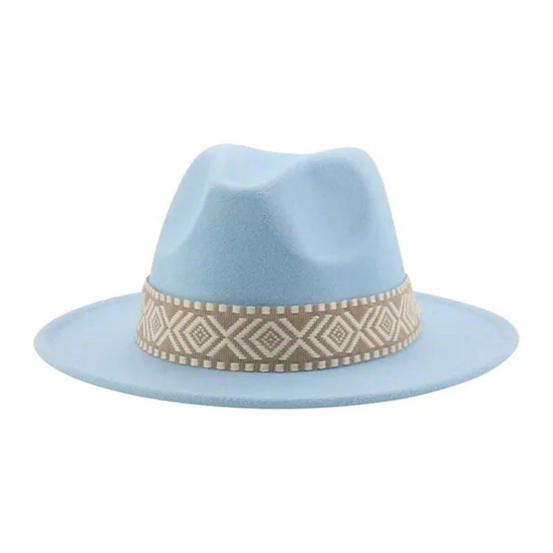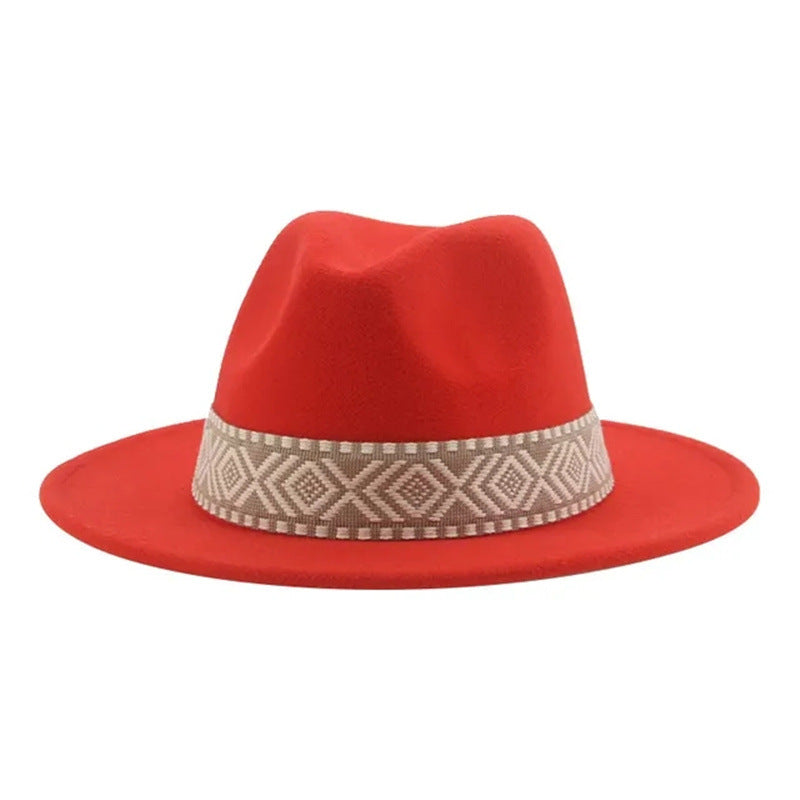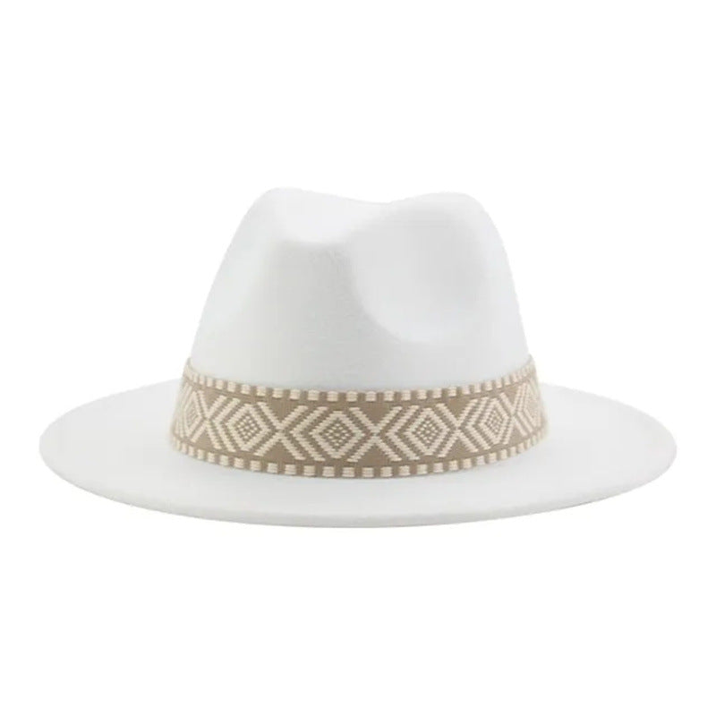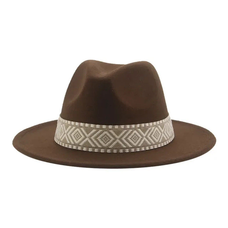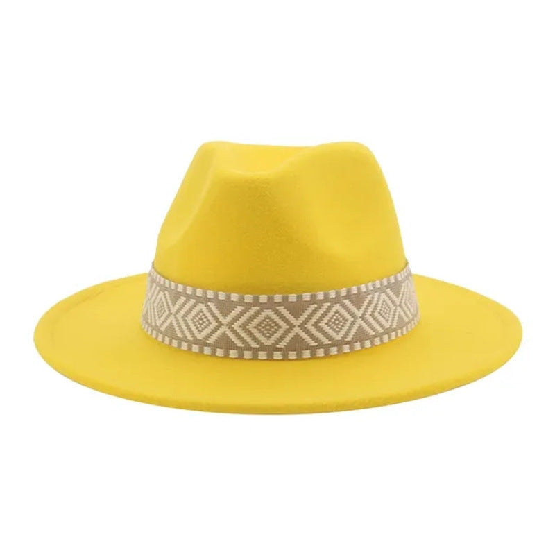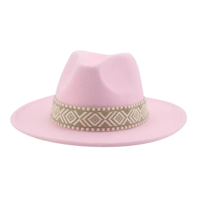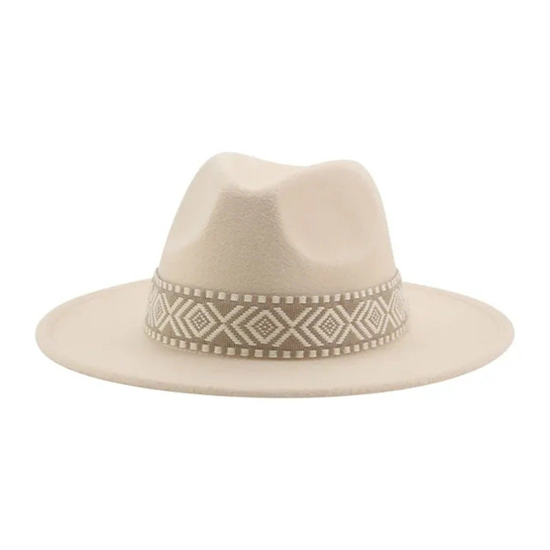 [Minimum order quantity is 2 pieces]Wide Brim Woolen Hat Jazz Flat Brim Woolen Hat Geometric Abstract Square Ribbon Felt Cap Retro Tibetan