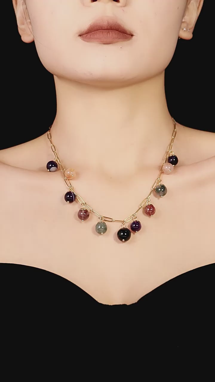 Mioli Handmade Chain Colorful Natural Stone Bohemian Necklace Women Stainless Steel All Match Internet Celebrity Embellished Jewelry