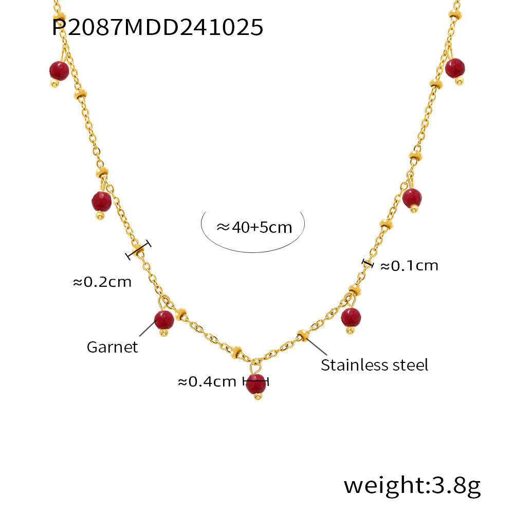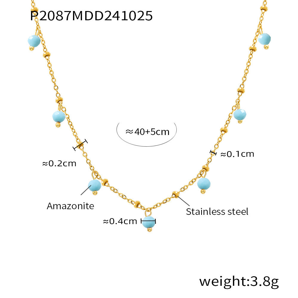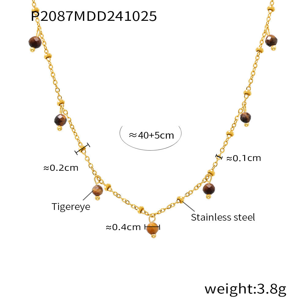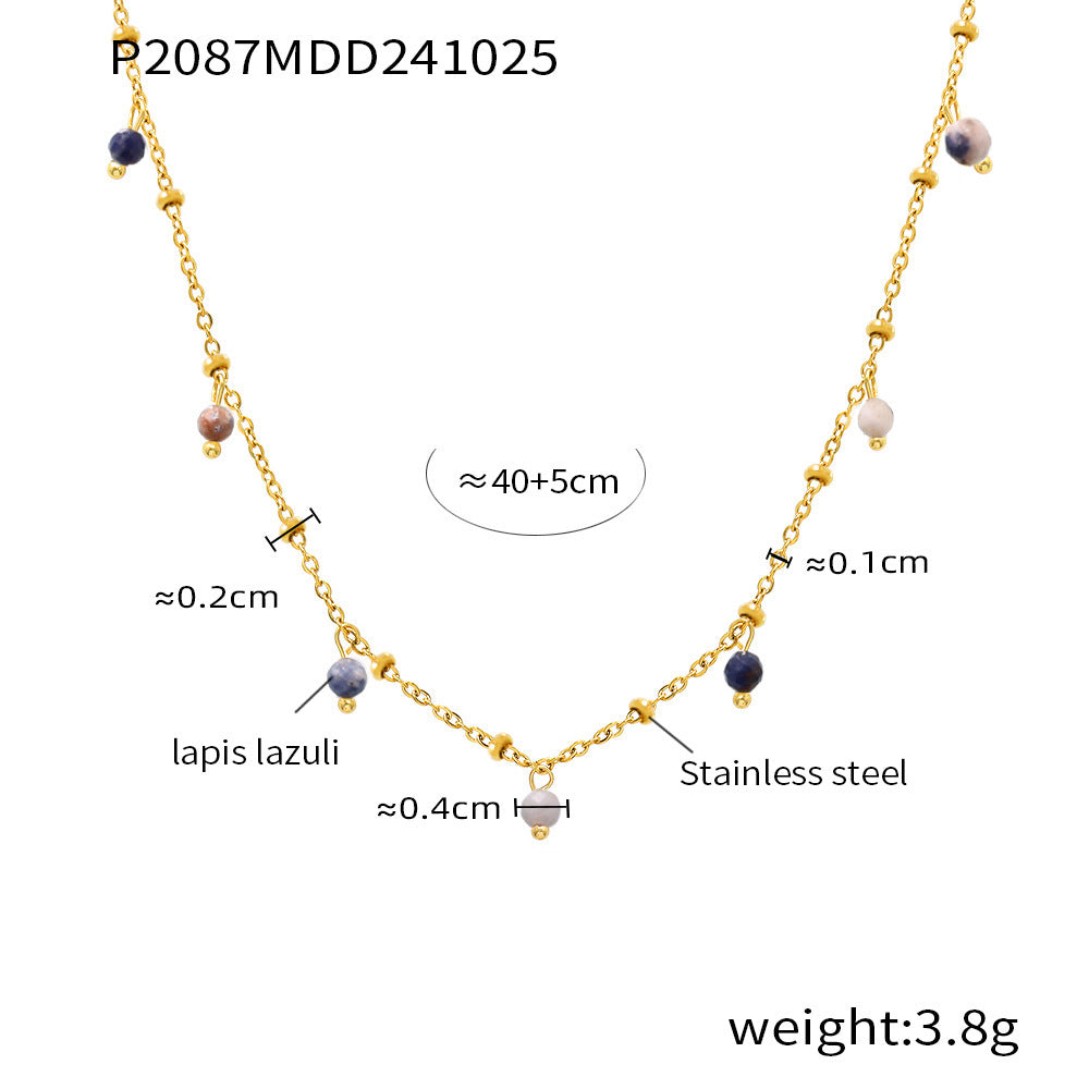 Mioli Natural Stone Handmade Small Bead Clavicle Ultra Fine Necklace Double Layer Twin Plated 18K Real Gold Color Retaining Necklace Women