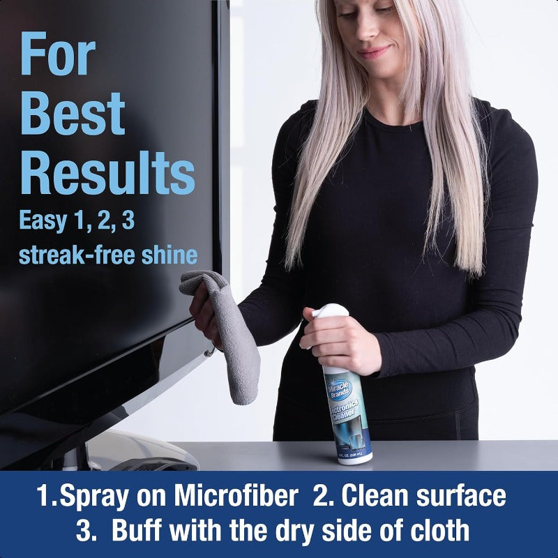 MiracleSpray pour le Nettoyage des Électroniques, Détachant Multi-Surfaces Sûr pour Tout Téléviseur, Téléphone, Moniteur, Clavier, Ordinateur Incluant une Serviette en Microfibre - Kit de 8 Onces