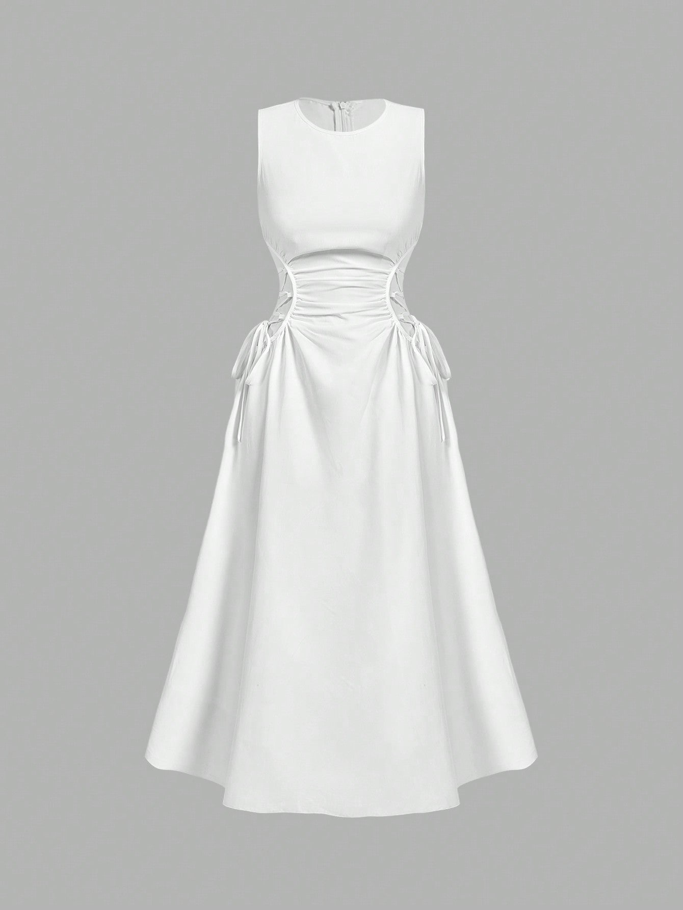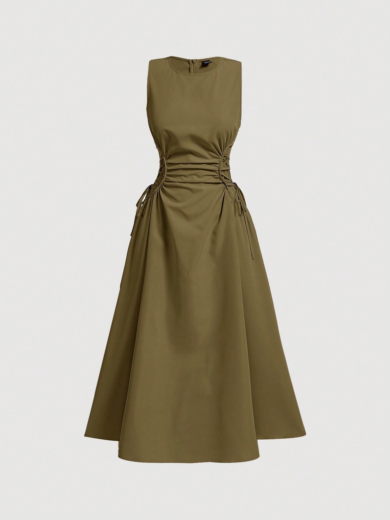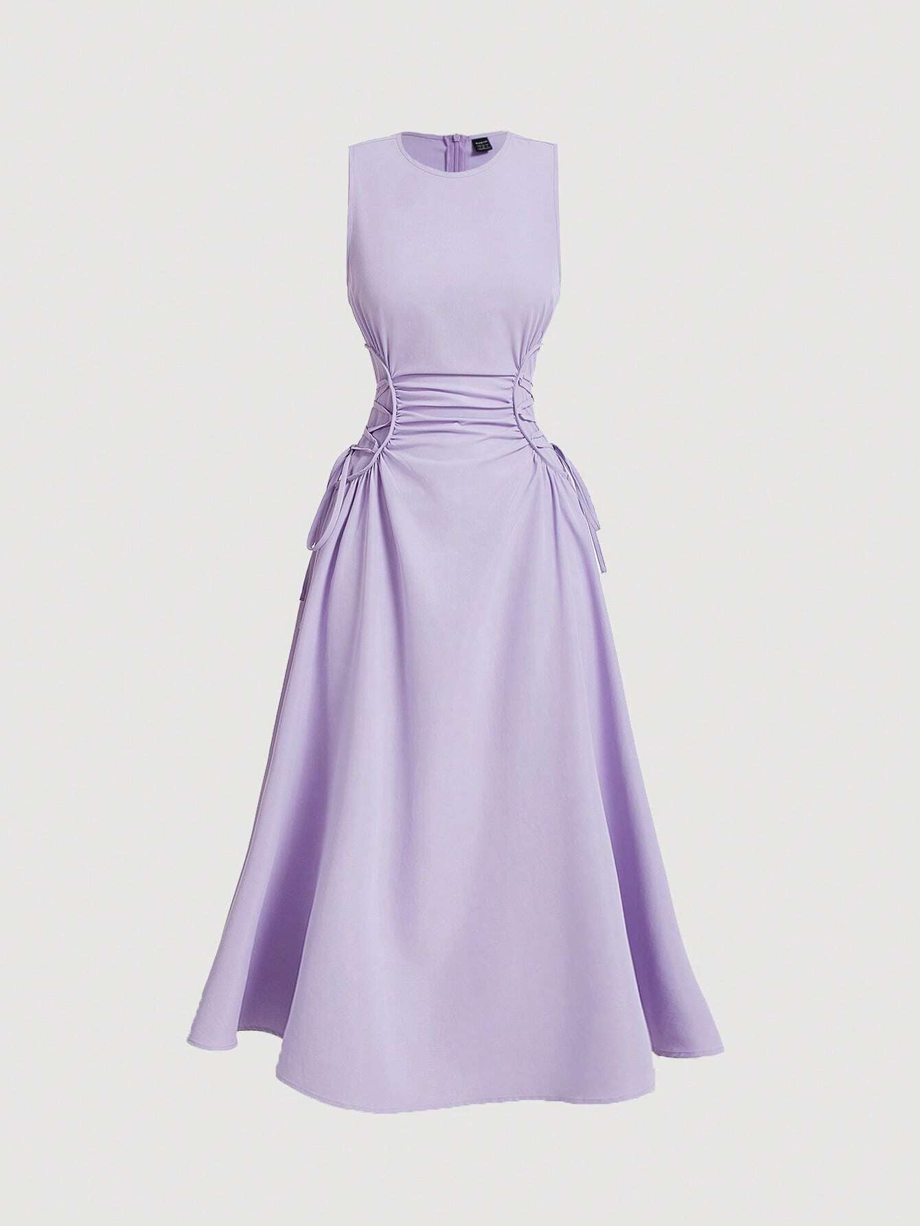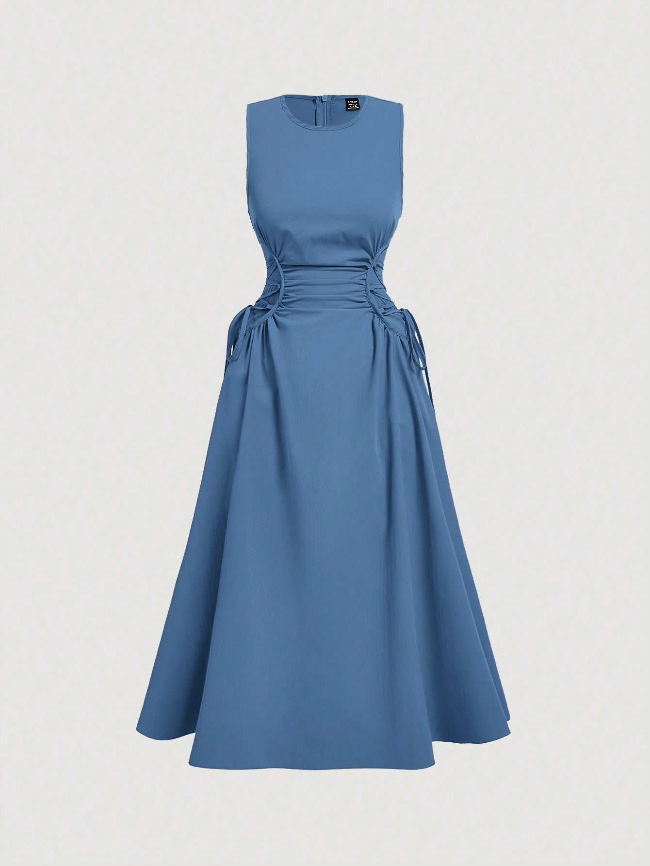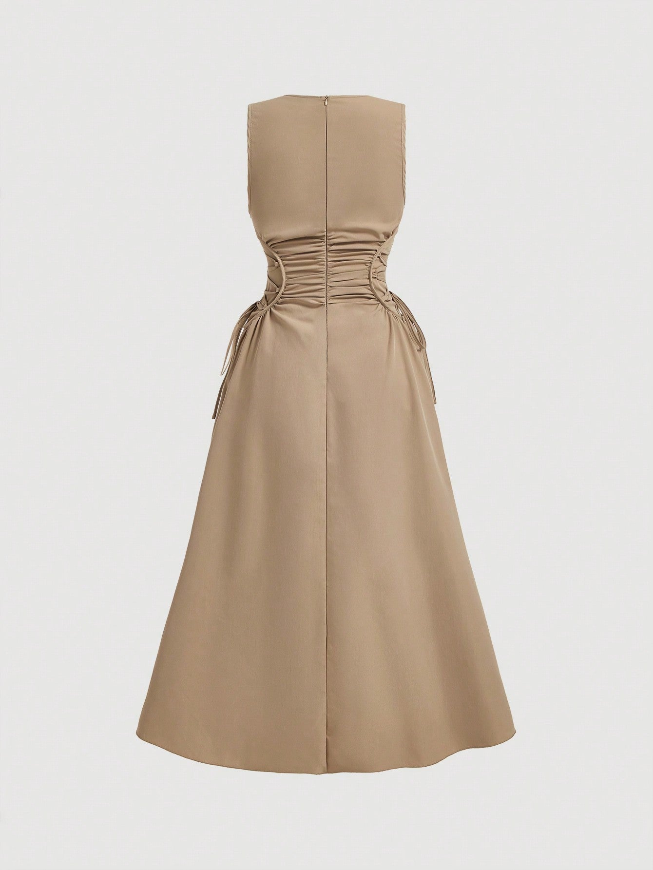 MOD Black Date Night Lateral Cross Frenulum Solid Ruched Detail Long Dress