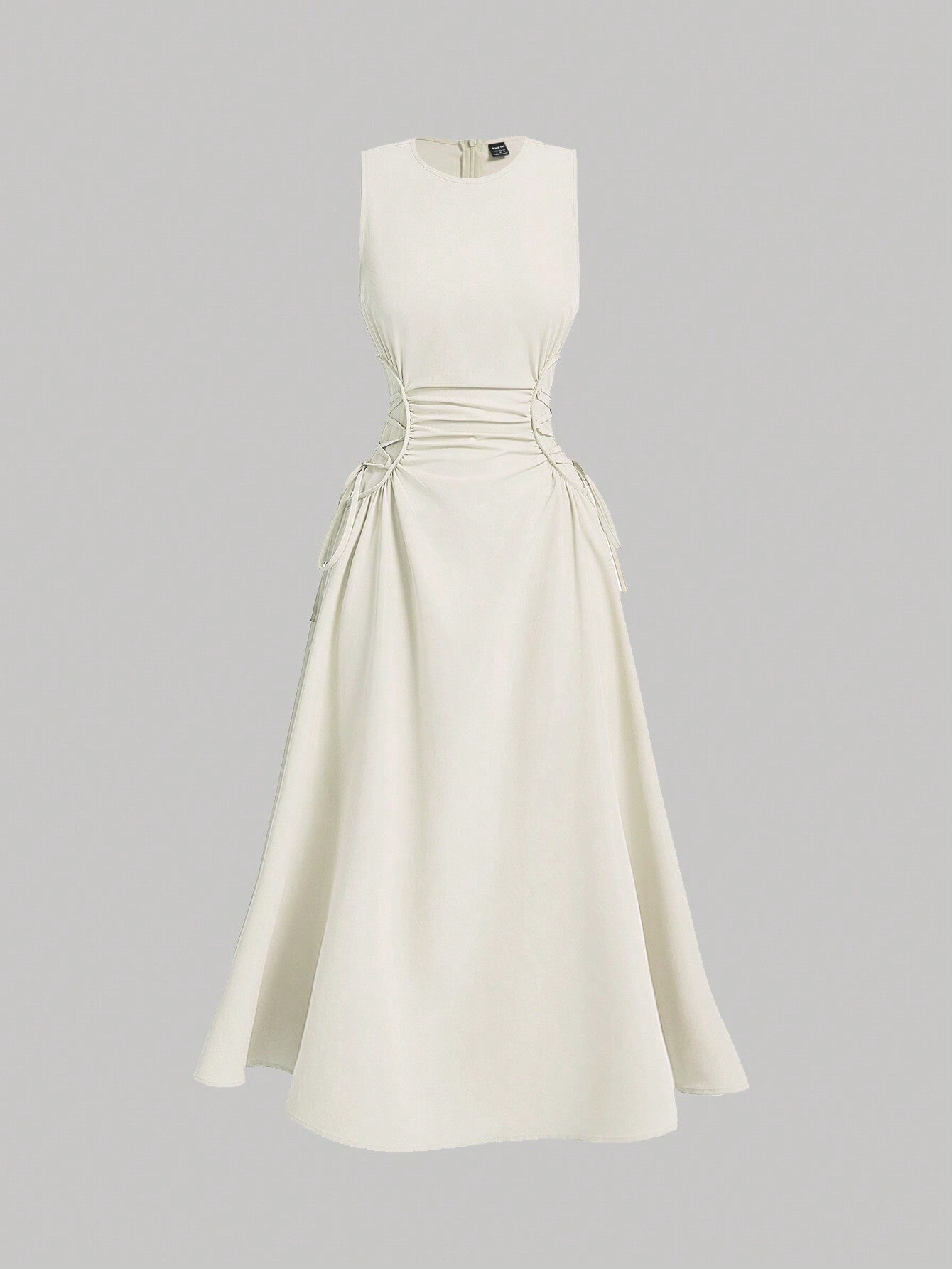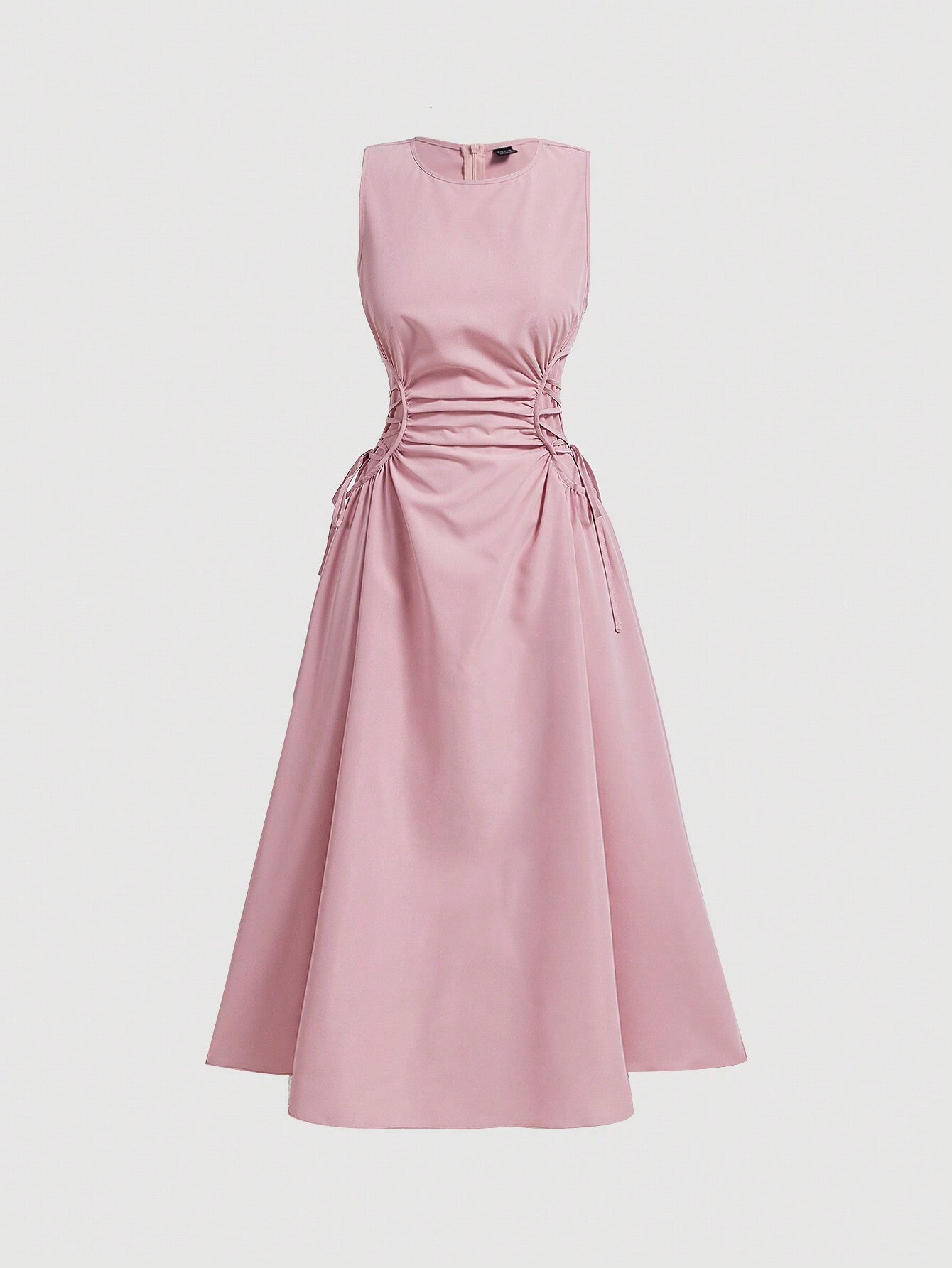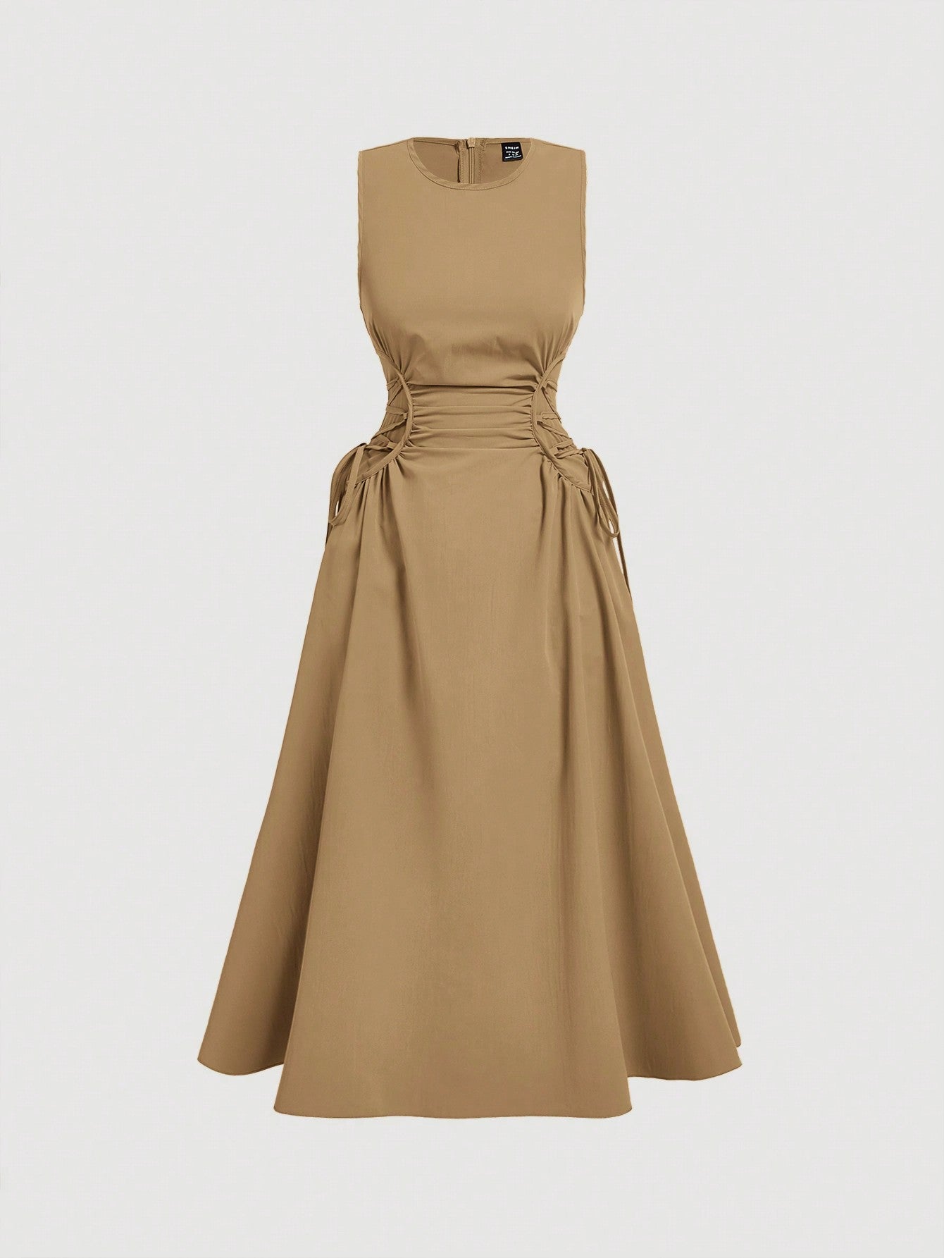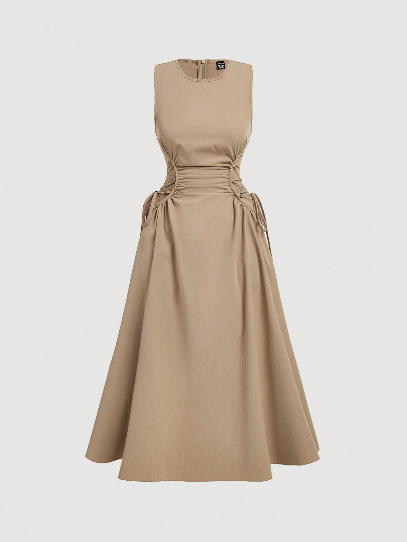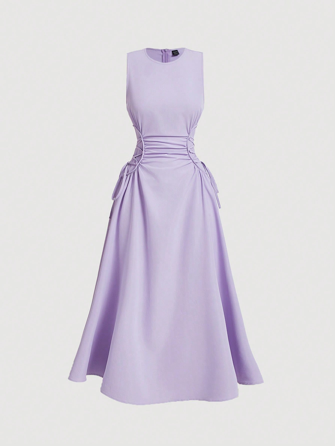 MOD Black Date Night Lateral Cross Frenulum Solid Ruched Detail Long Dress