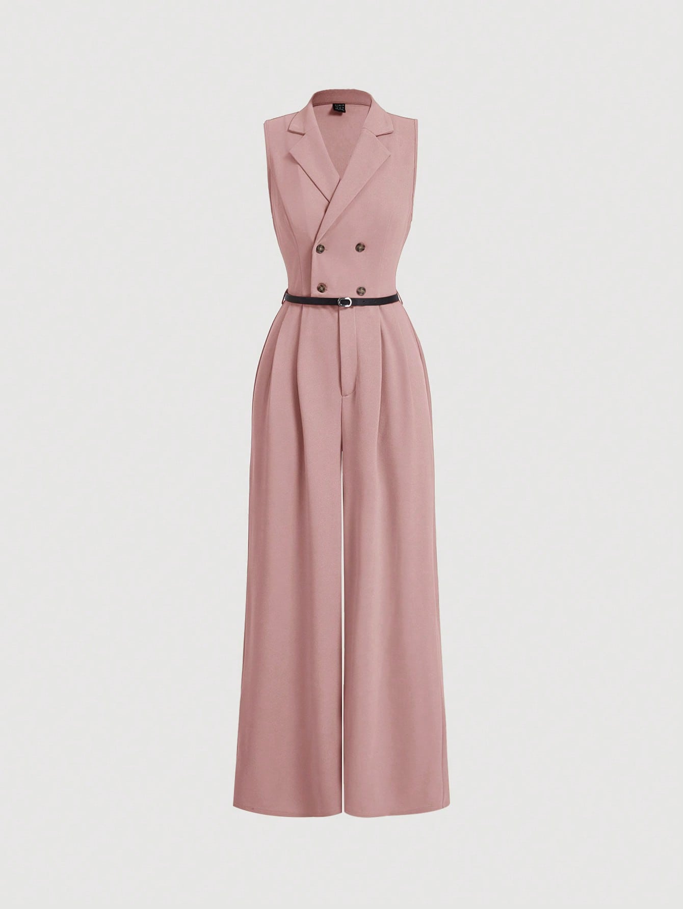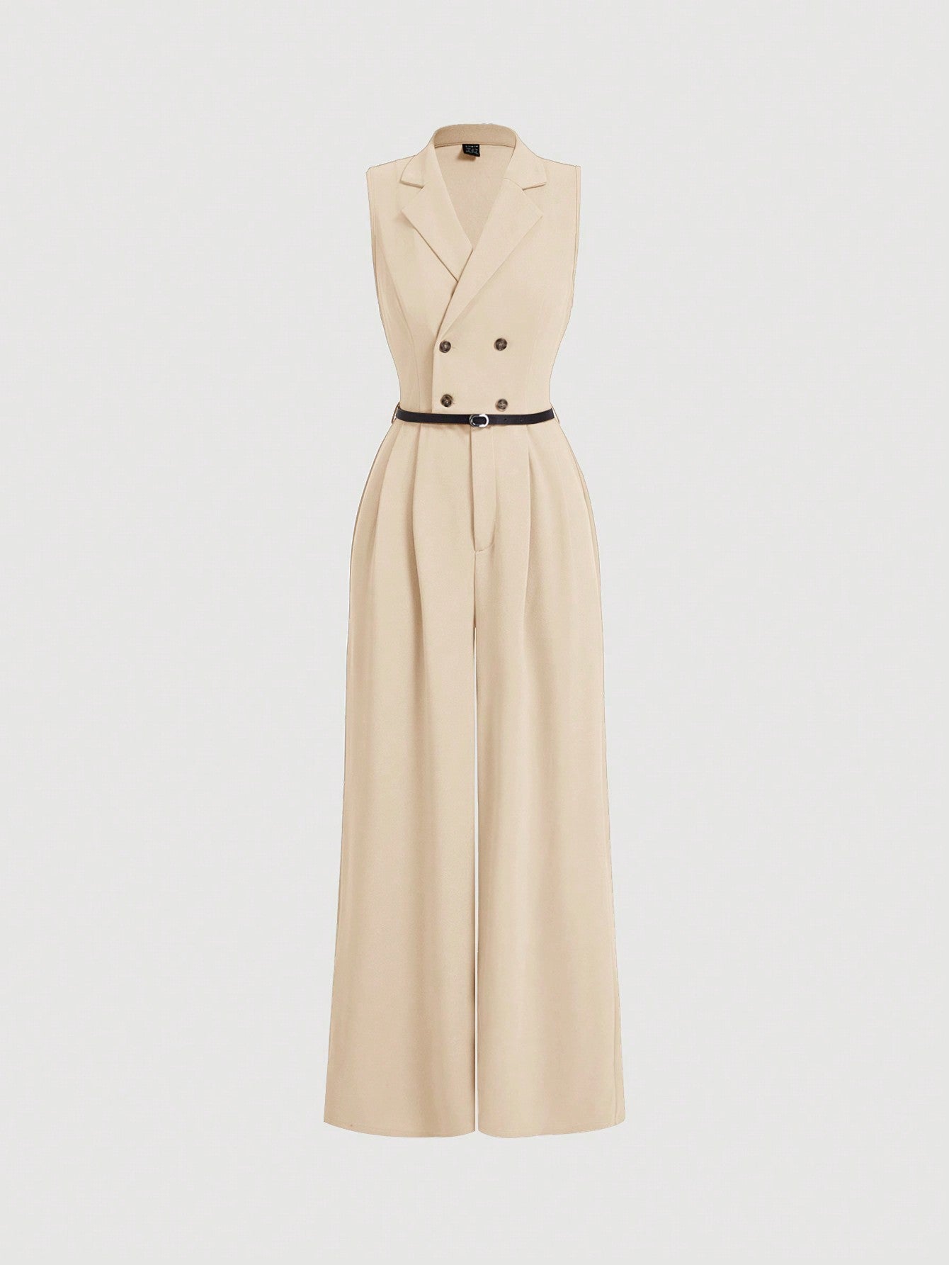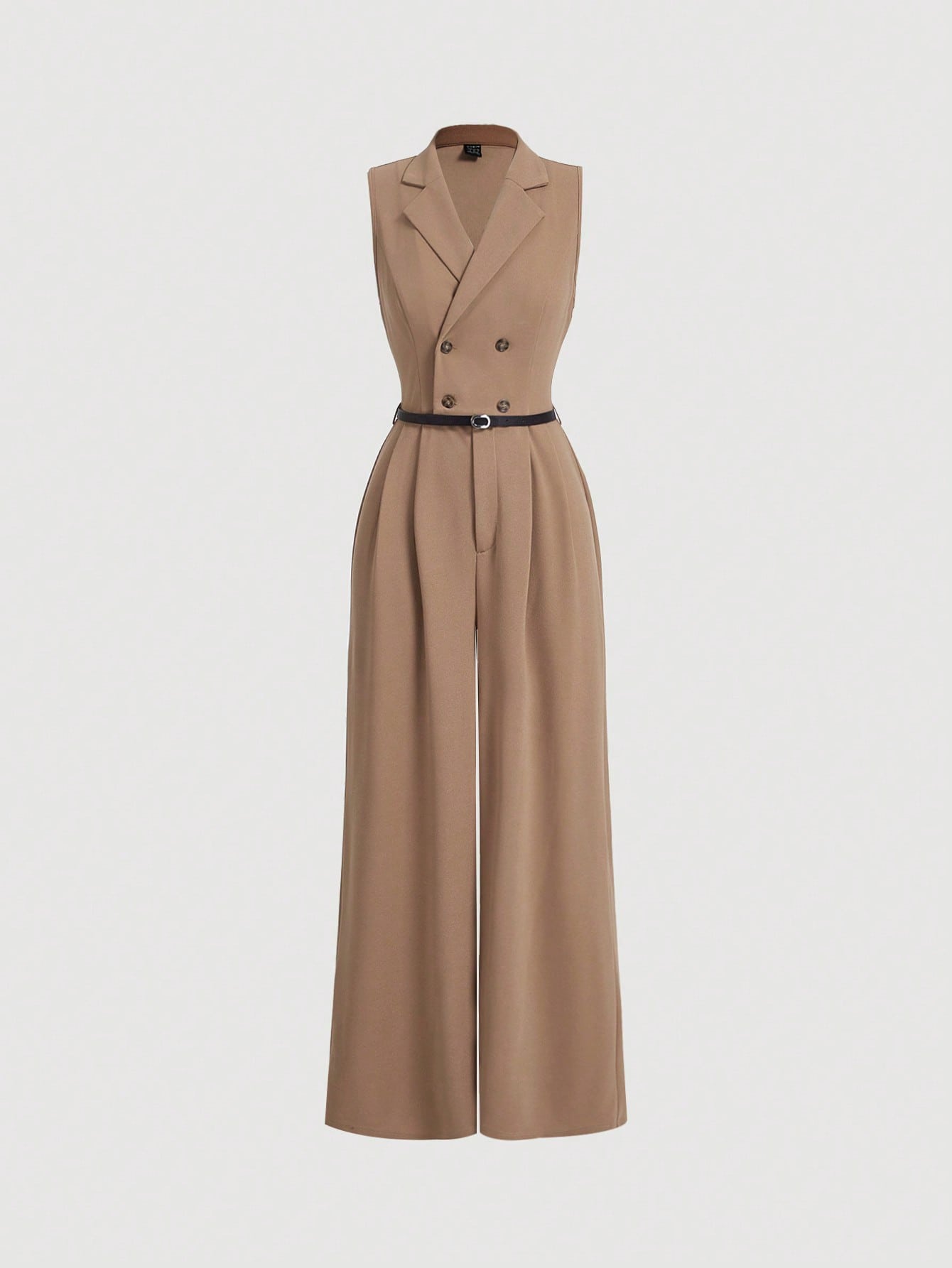 MOD Khaki Elegant Ladies' Romper With Blazer Collar