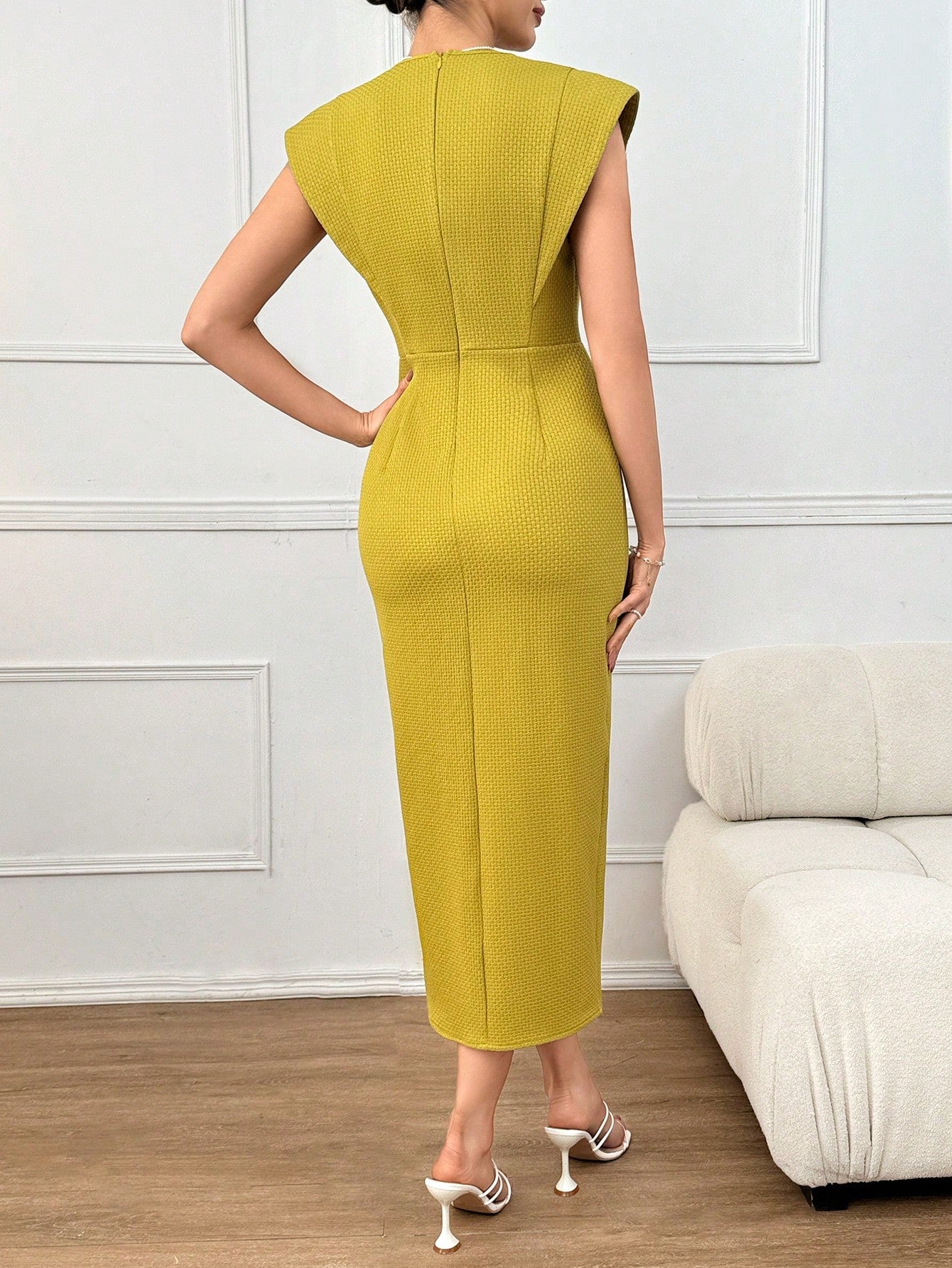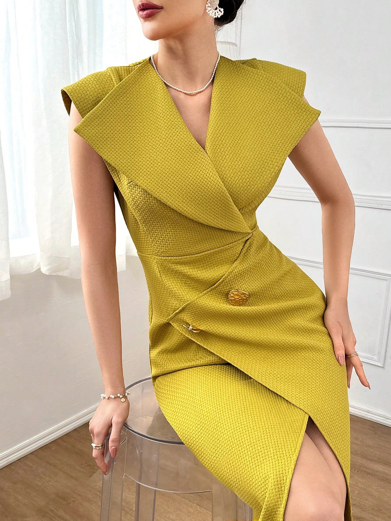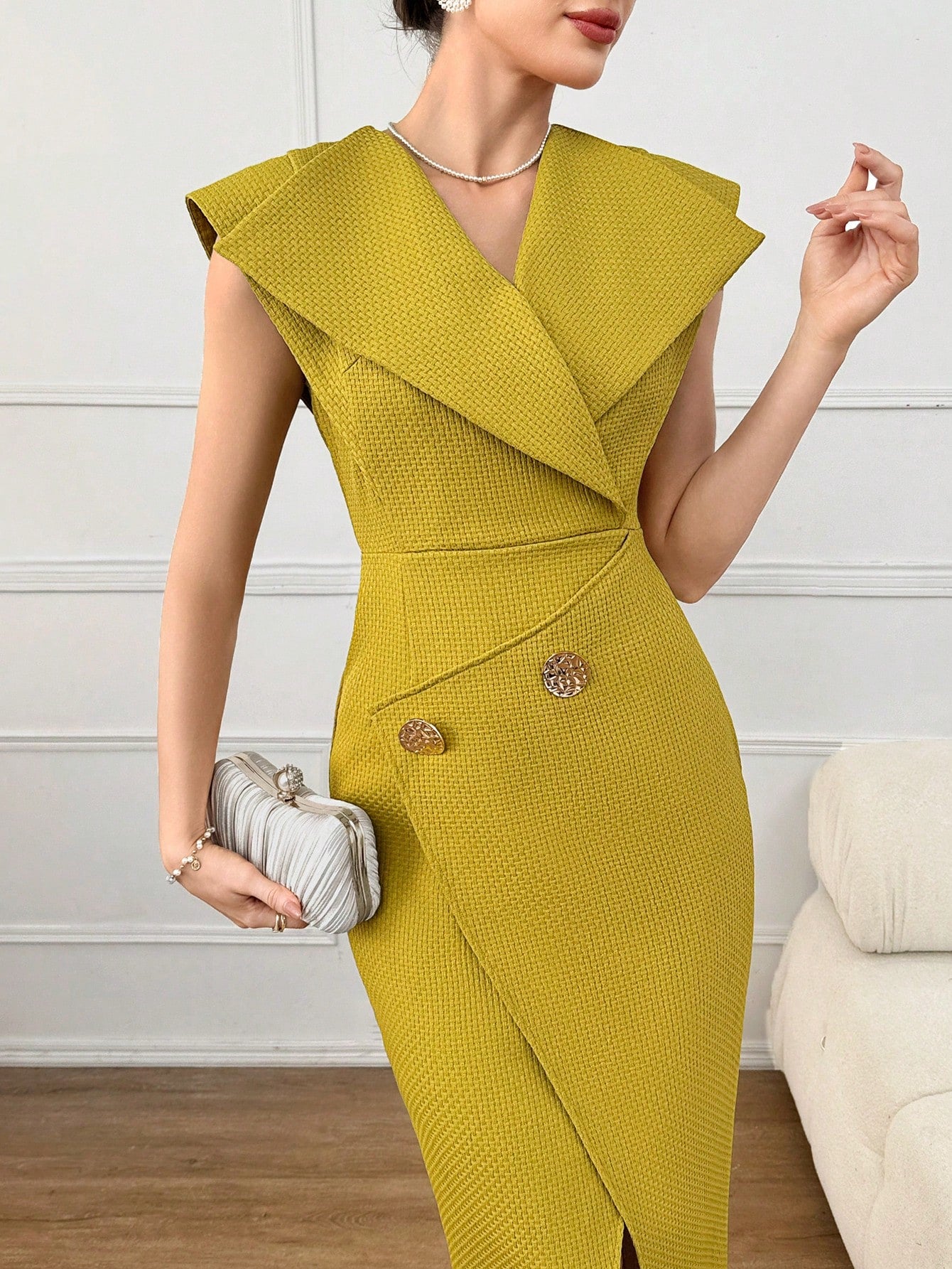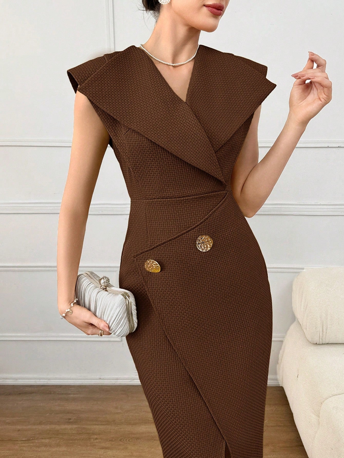 Modely Solid Button Detail Wrap Hem Dress Long Evening Dresses