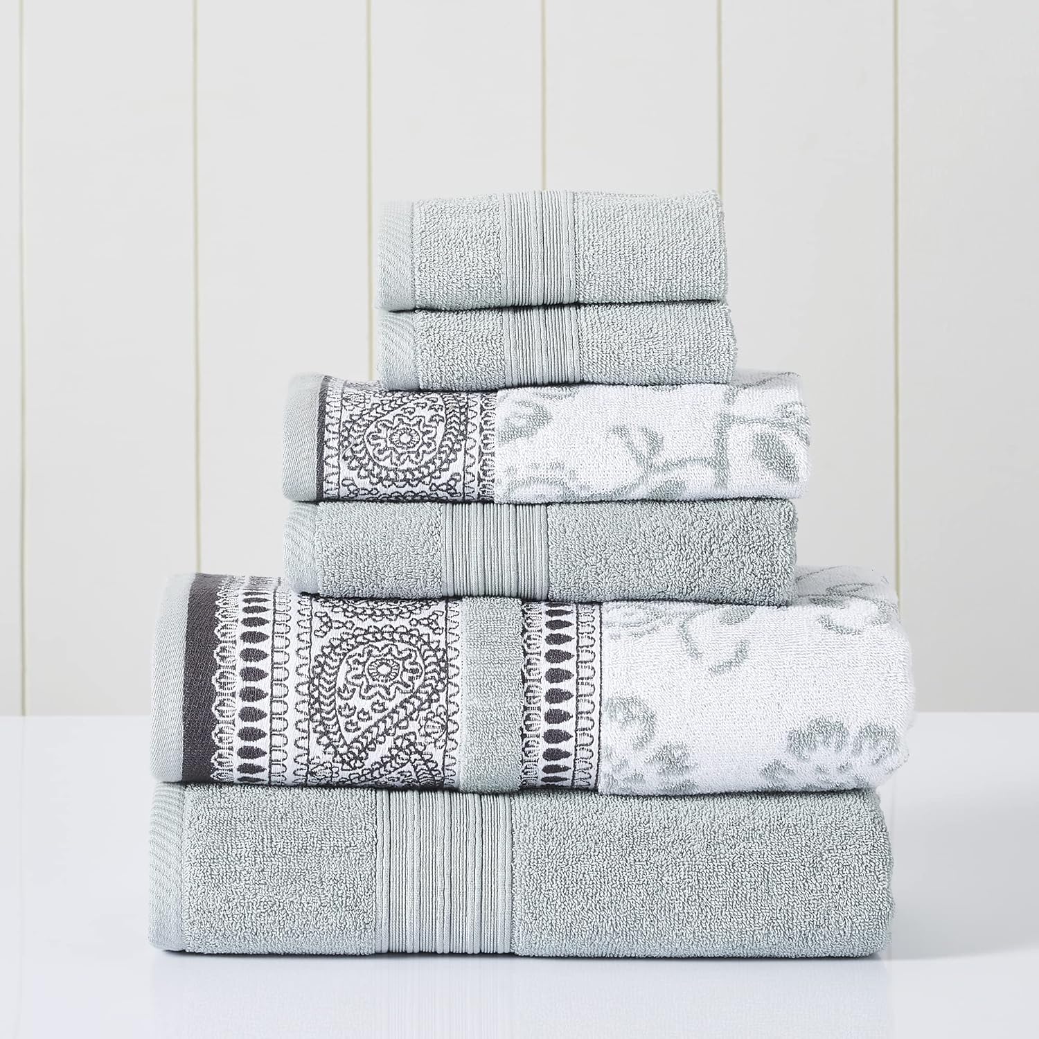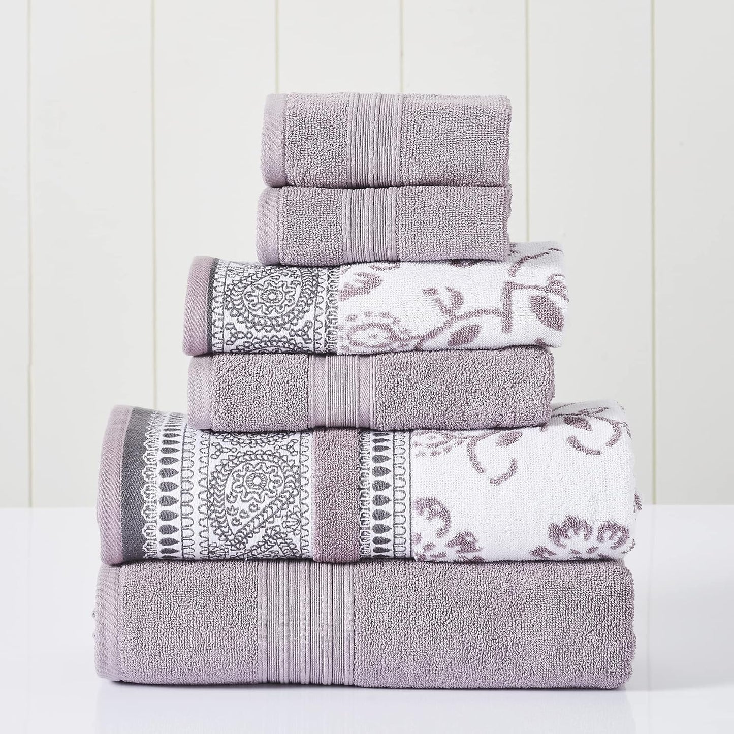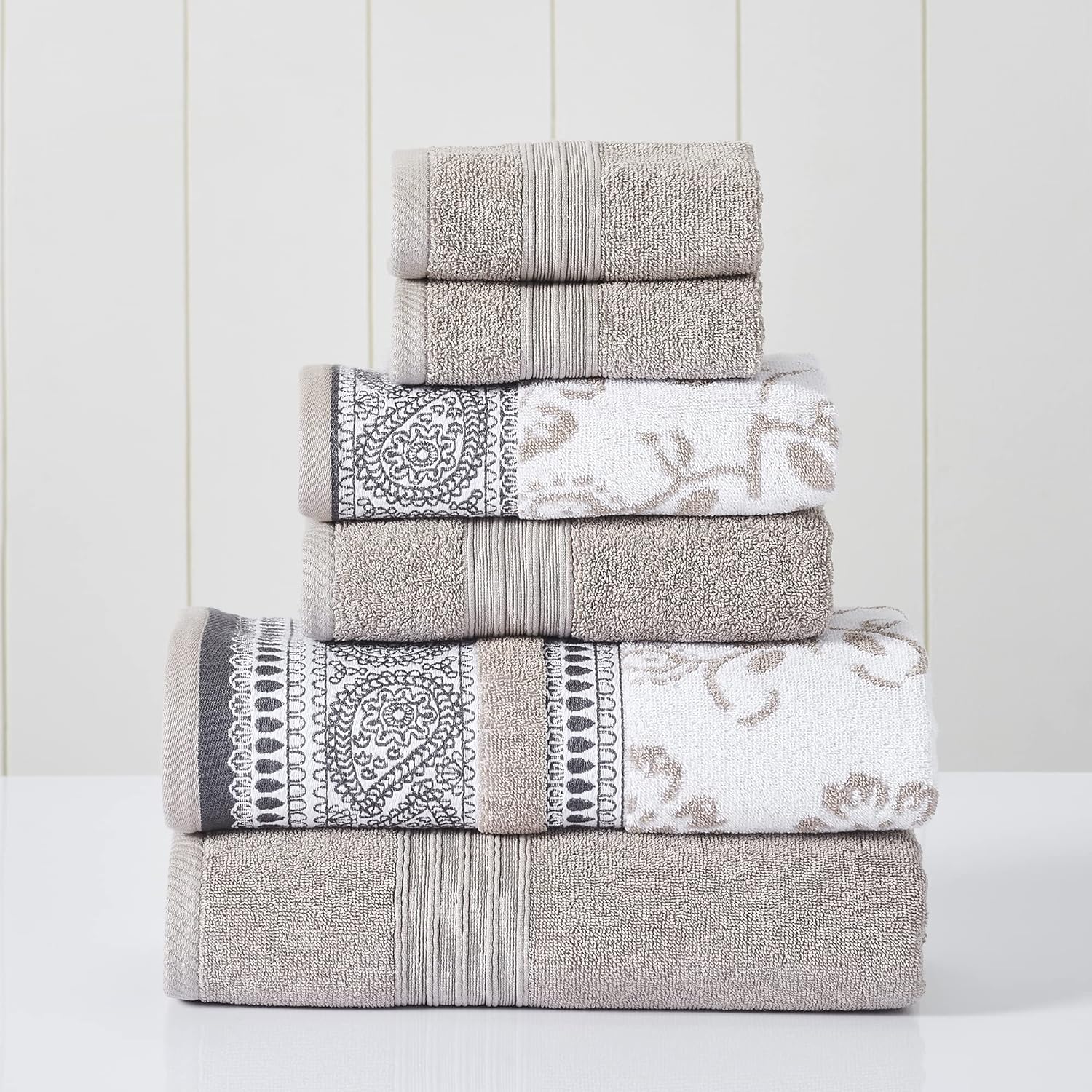 Modern Threads 6 Piece Set, 2 Bath Towels, 2 Hand Towels, 2 Washcloths Yarn Dyed Jacquard/Solid Towel Set Ophelia Clay