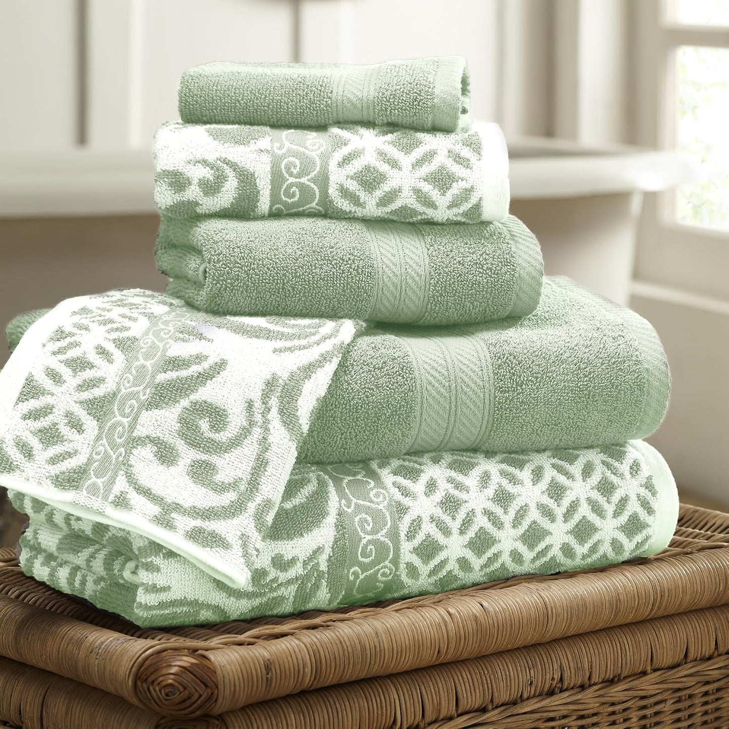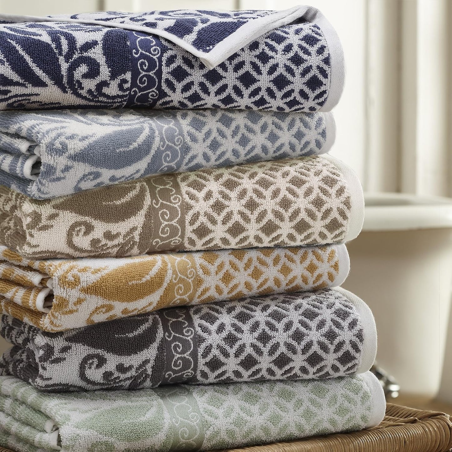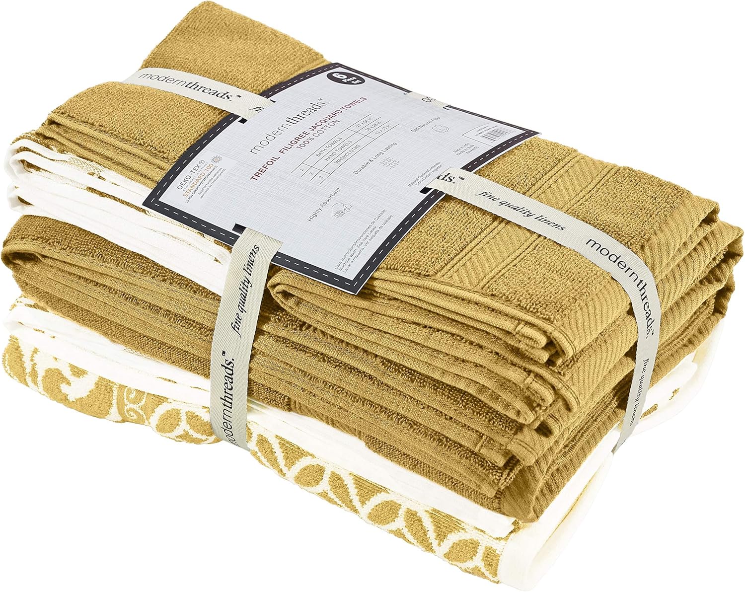 Modern Threads Trefoil Filigree 6-Piece Reversible Yarn Dyed Jacquard Towel Set - Bath Towels, Hand Towels, & Washcloths - Super Absorbent & Quick Dry - 100% Combed Cotton