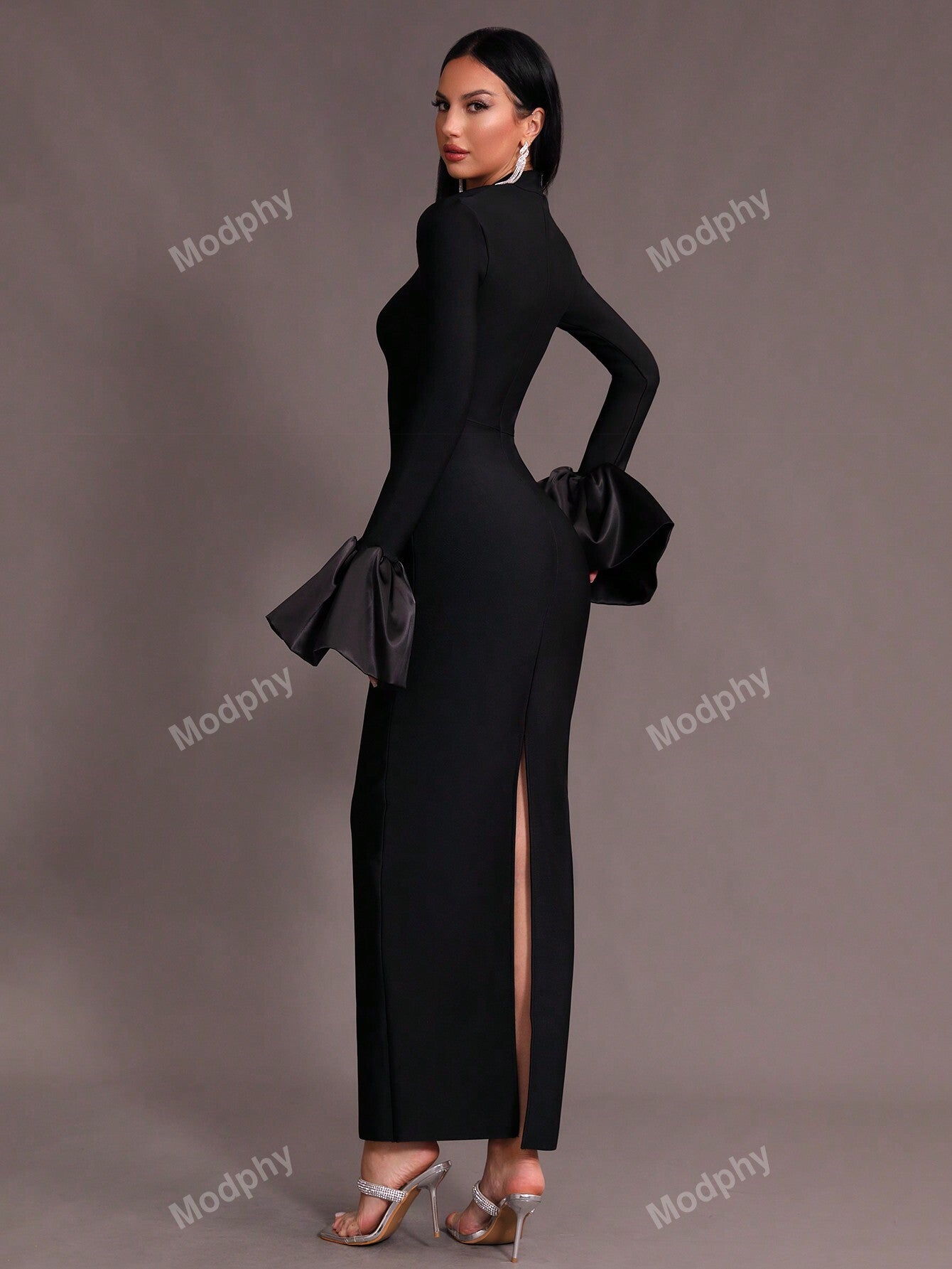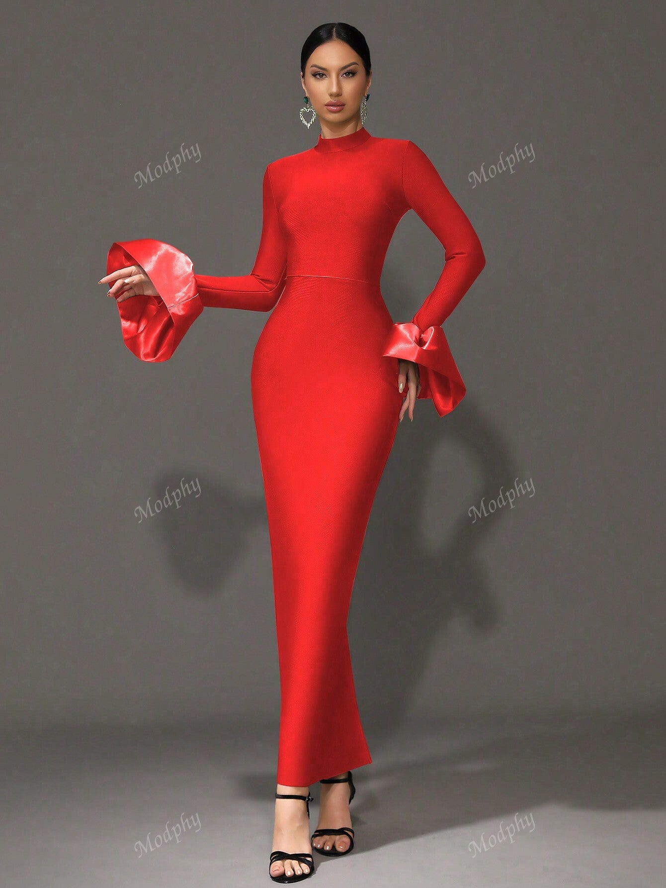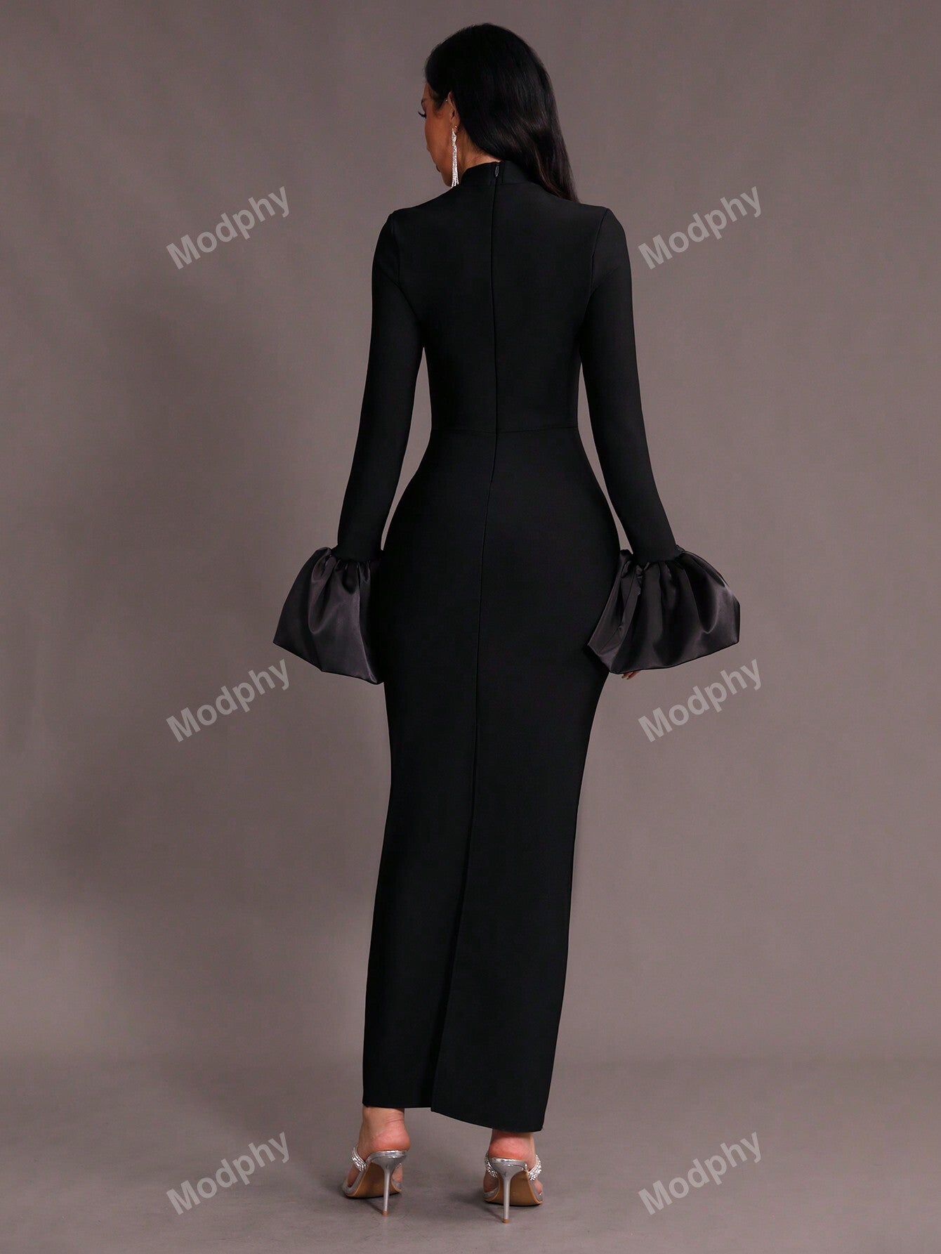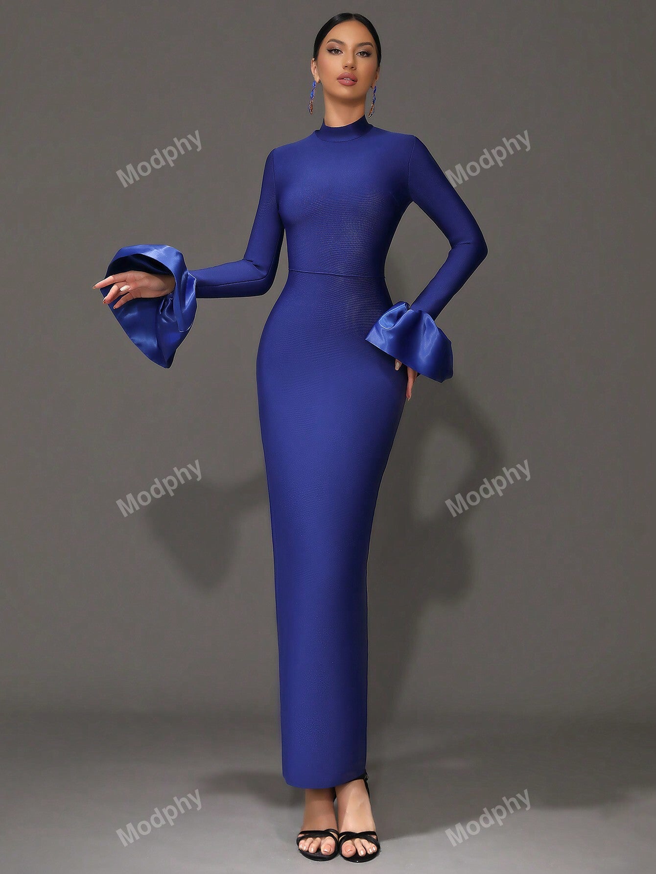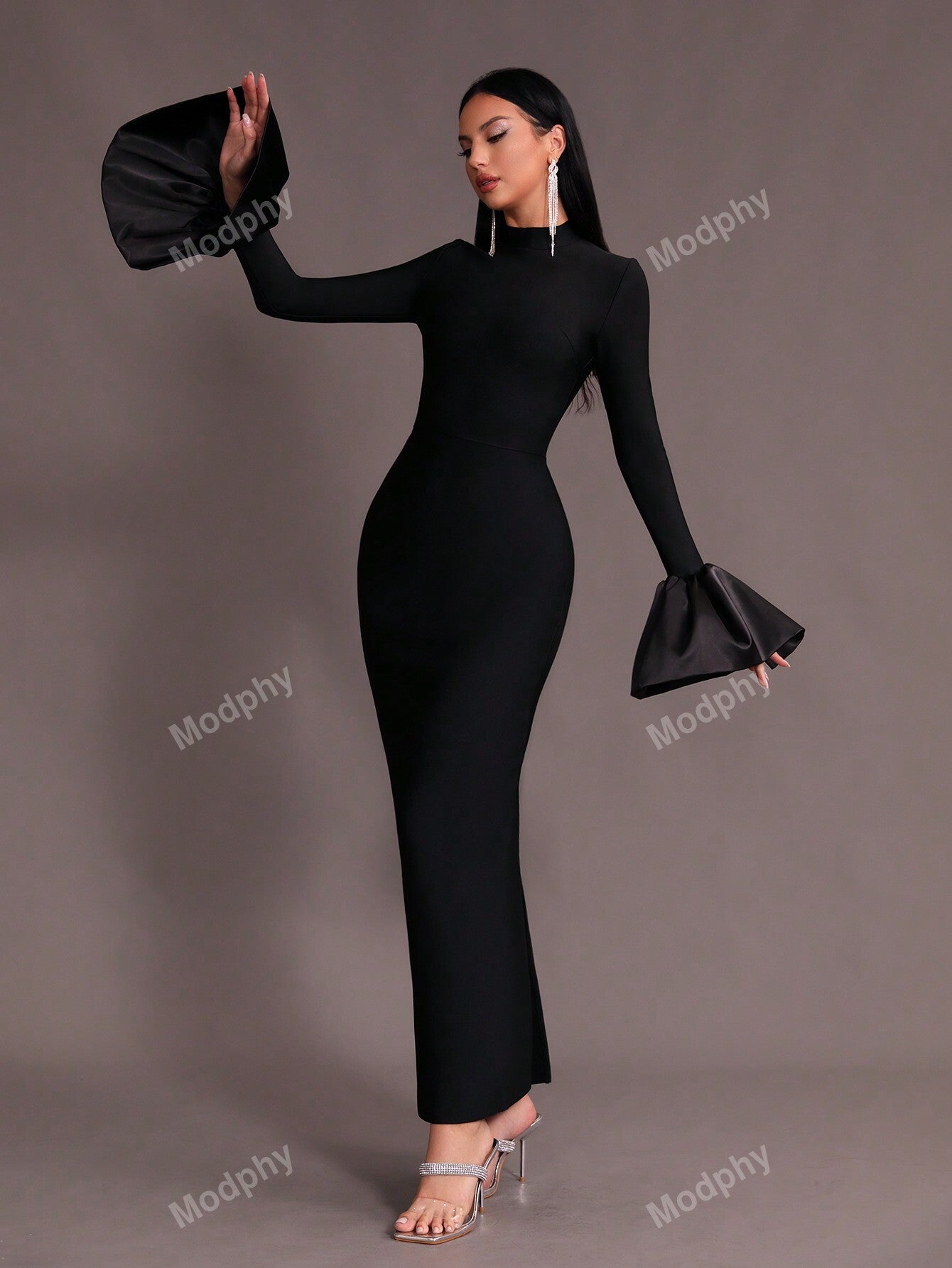 Modphy New Dark Green Sexy V-Neck Long Sleeve Mermaid Dress, High Collar Form Fitting Bodycon Gown For Women, Wedding, Cocktail Party, Special Occasion