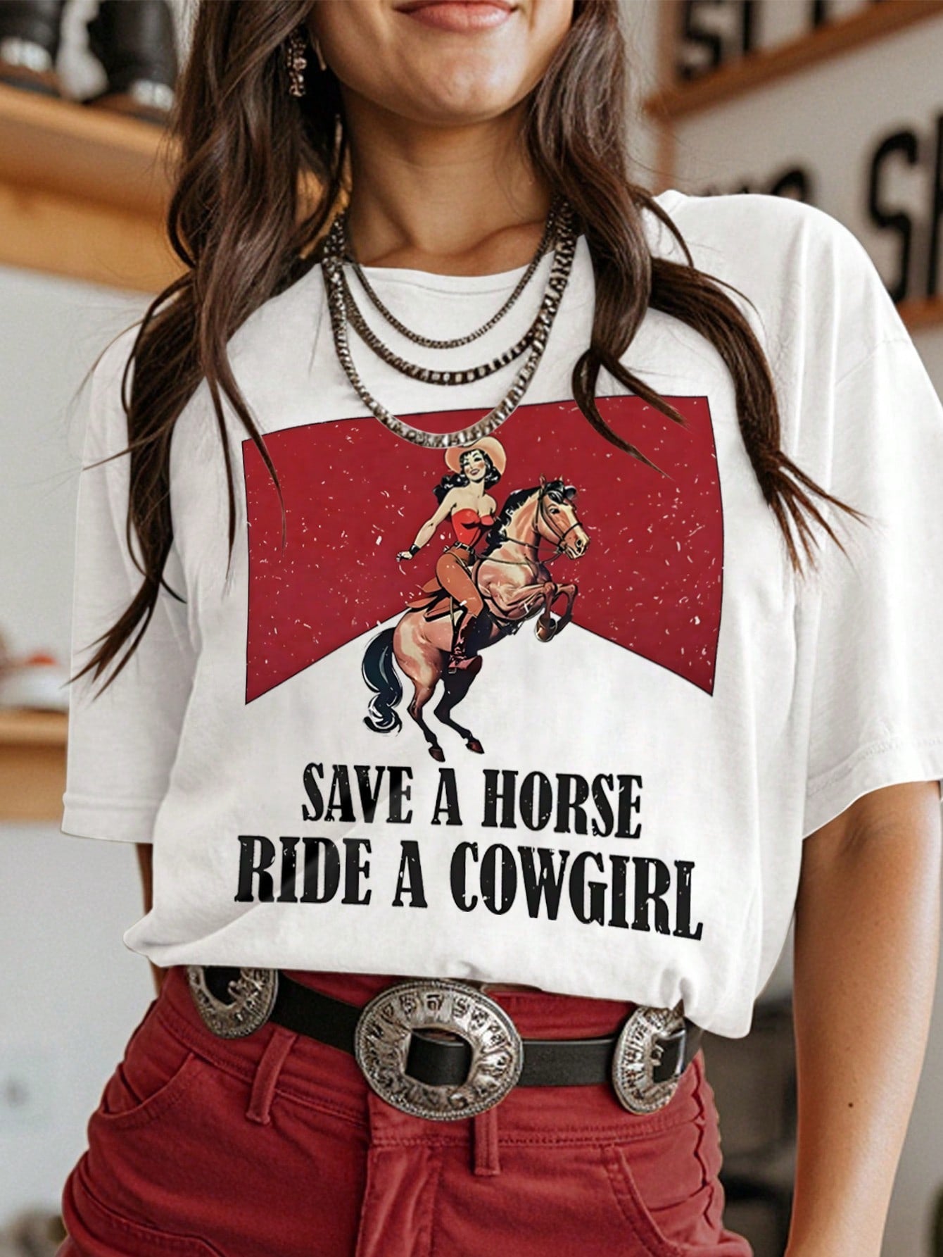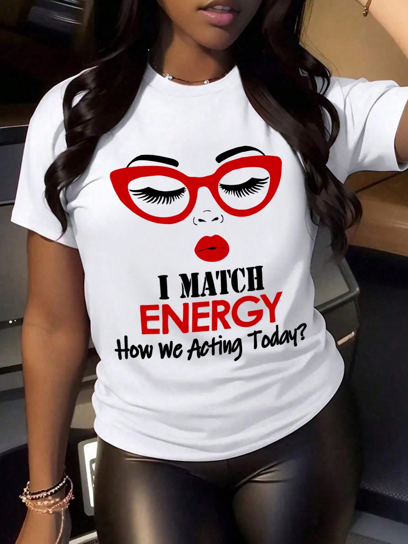 MOOSTA Women Letter & Graphic Print Round Neck Casual Versatile Short Sleeve T-Shirt Graphic Tees Women Tops
