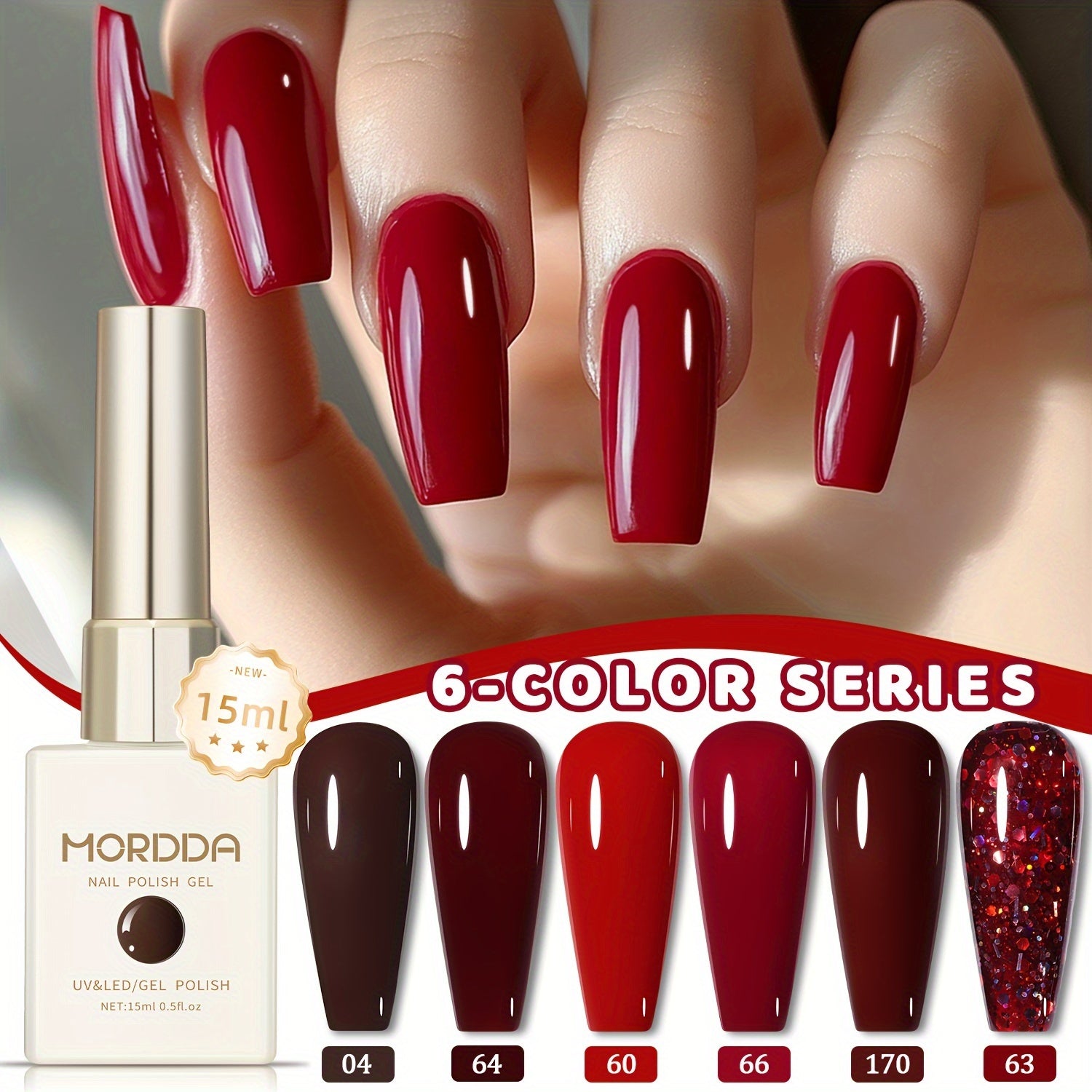 Mordada 6pcs Nail Art Set, 2024 New Trendy Caramel Red with Sparkle, Matte Finish, Round Shape, Fragrance-Free, Nail Tips for Manicure Salon