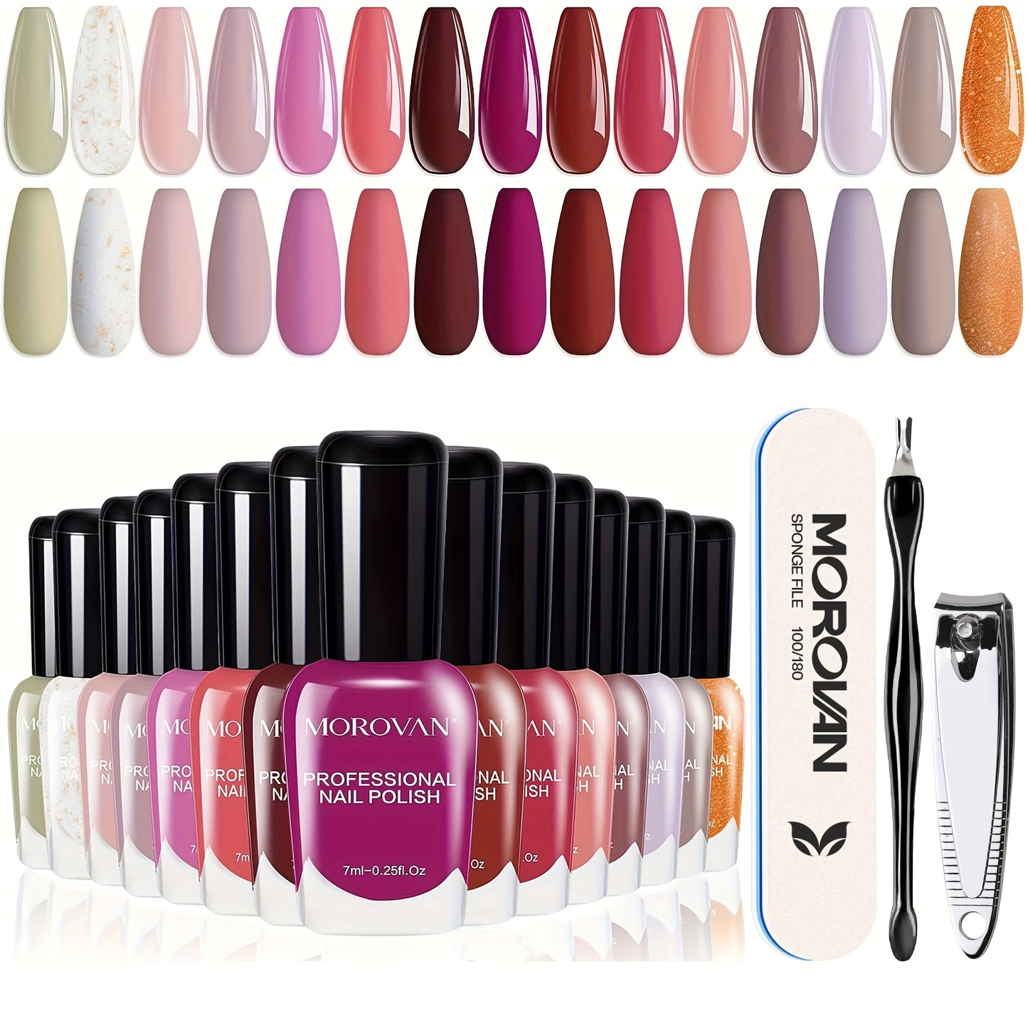Morovan 15 Color Nail Polish Set: Air Dry Regular Quick Dry Nail Polish Pack 0.25oz Red Fall Nail Polish Kit Gift for Women