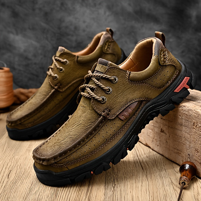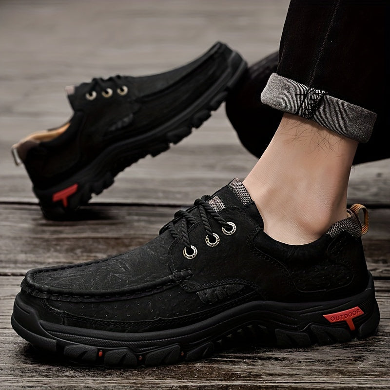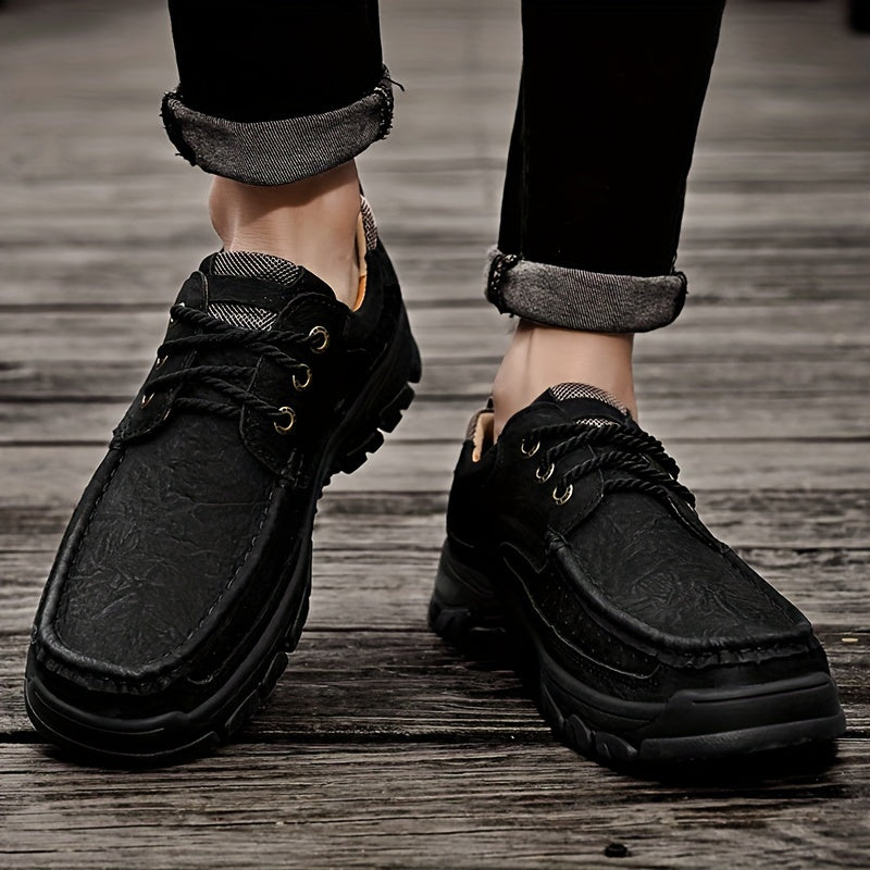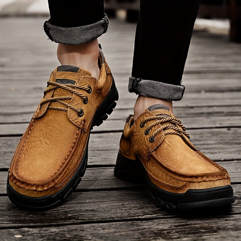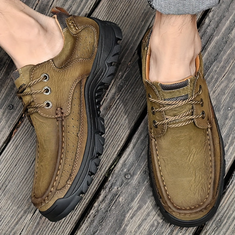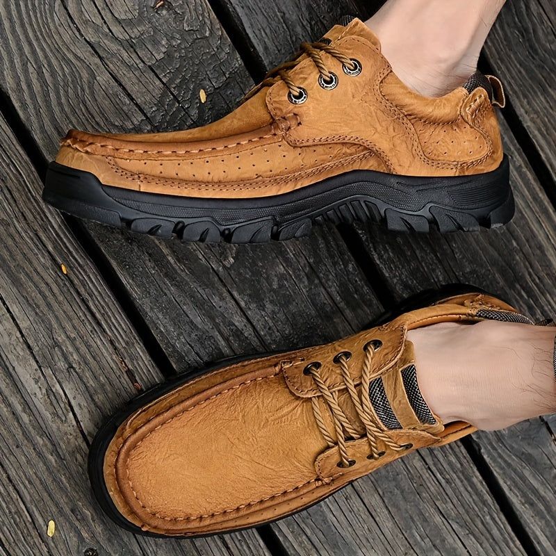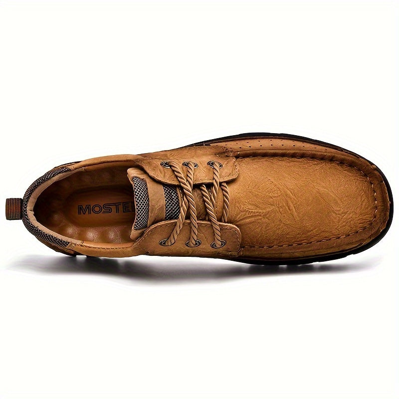 MOSTELO Men's Top Grain Leather Loafer Shoes, Comfy Non Slip Rubber Sole Lace Up Shoes For Men's Outdoor Activities