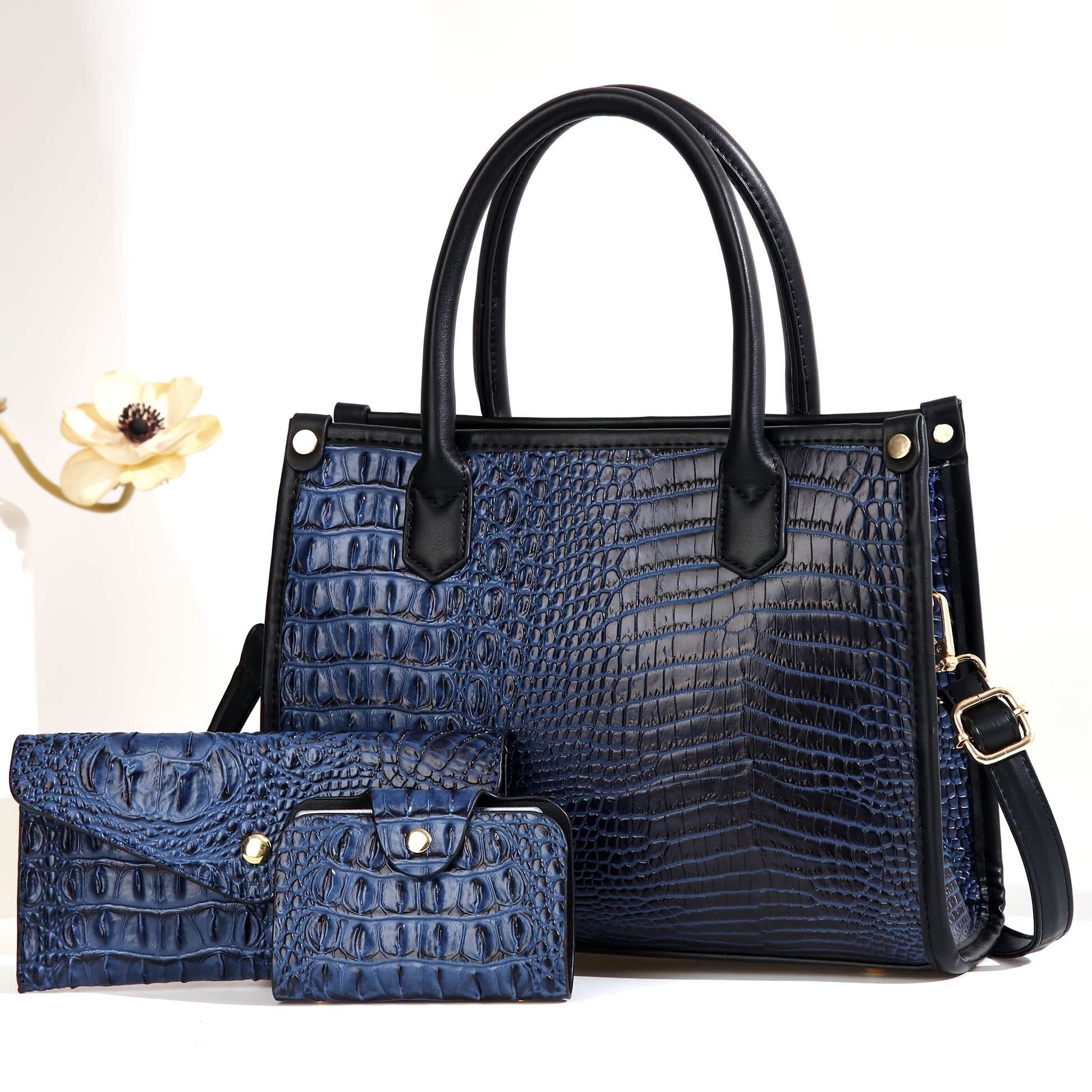 Mother's Day Gift for Mom, Family Luxury Women's Bag, Large Capacity Tote Bag with Crocodile Print, Multi-Set Luxury Faux Handbag, Elegant Large Capacity Fashion Handbag, with Shoulder Bag and Letter Pattern Handbag for Easter