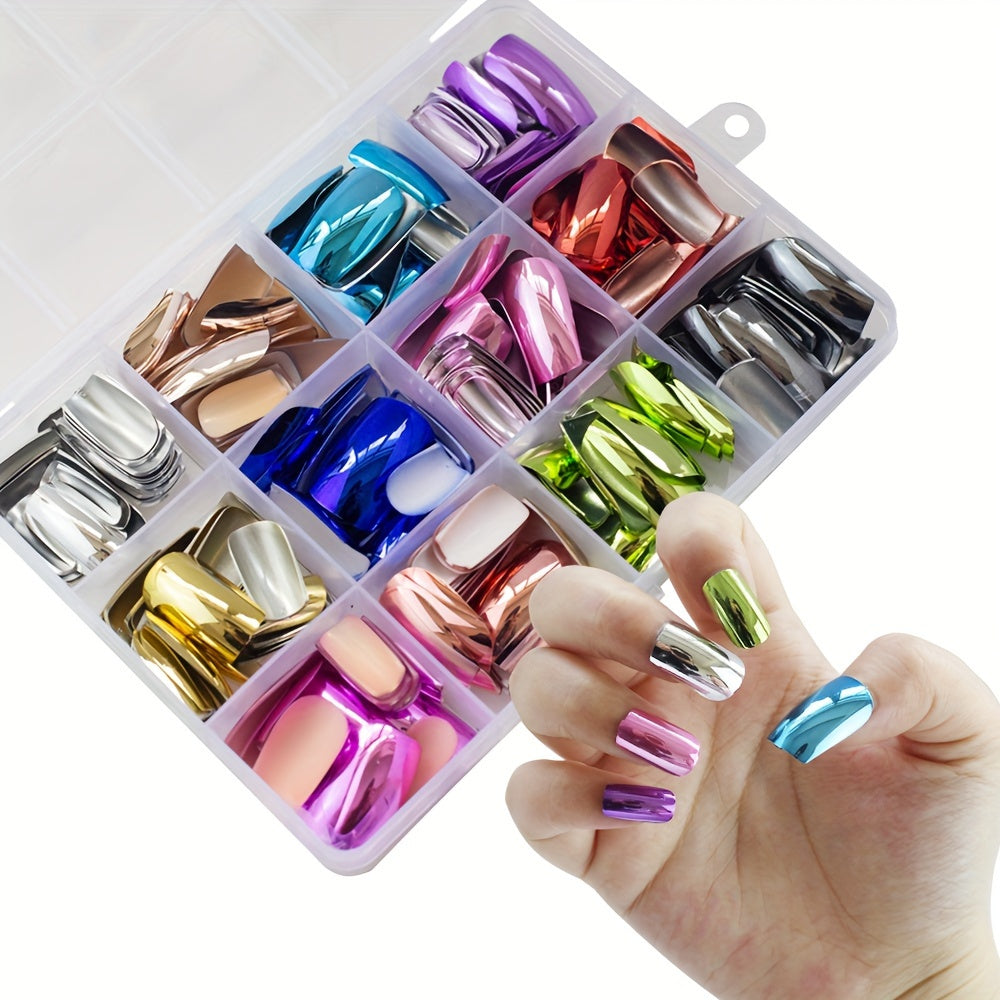 Multi-Color Chrome False Nails Set, 288 Pcs High-Gloss Metallic Pre-Designed Fake Nail Tips With Durable Plating Finish, Fashion Nail Art Kit For DIY Manicure