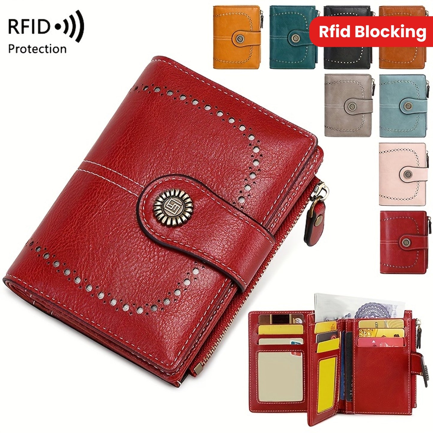 Multi-Functional RFID Anti-theft Wallet - Women's Retro Fashion Clip Short Small Multi-Card Slot Zipper Buckle Wallet