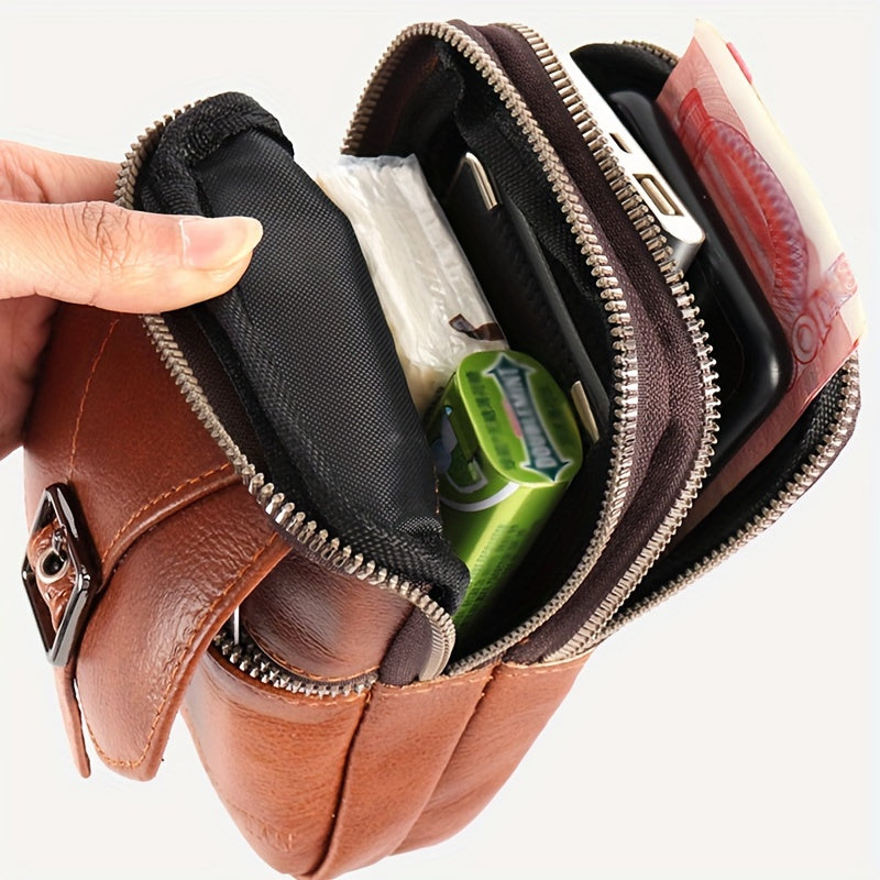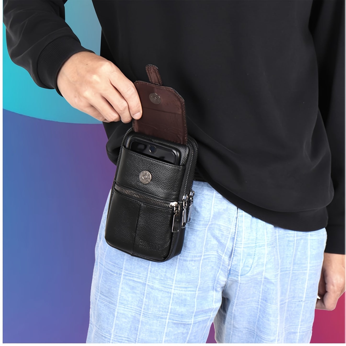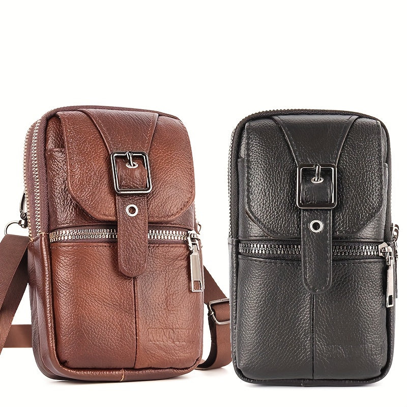 Multifunction Genuine Leather Messenger Bags Pure Handbags Fashion Cell Phone Pouch Belt Loop Bag Shoulder Crossbody Waist Pack