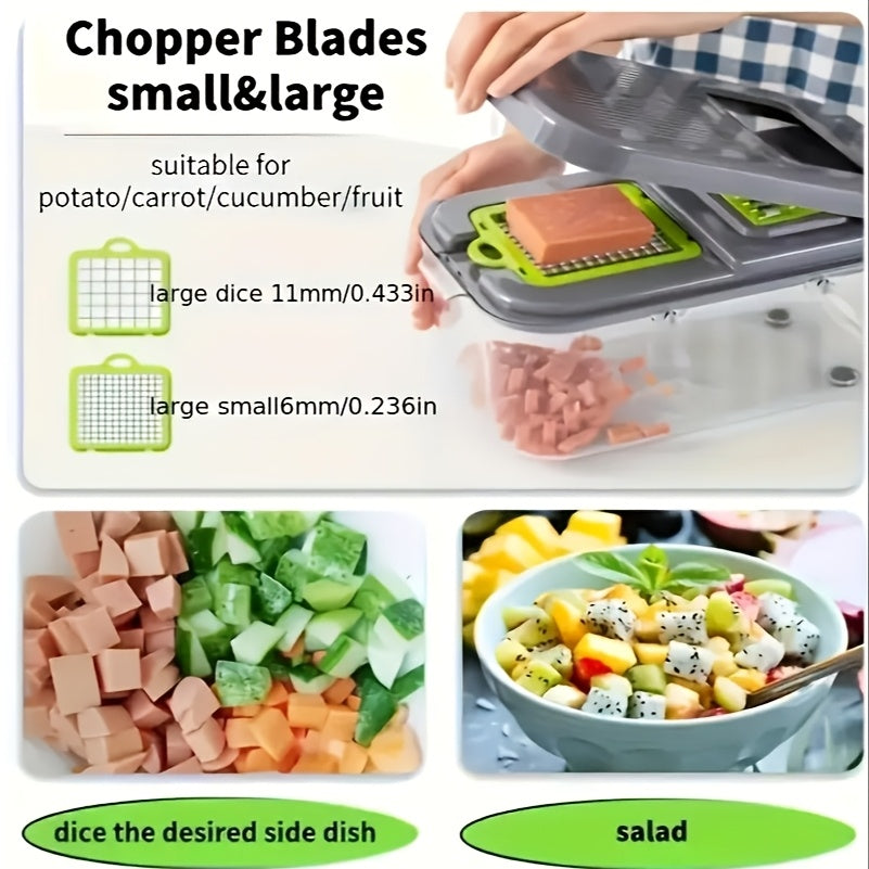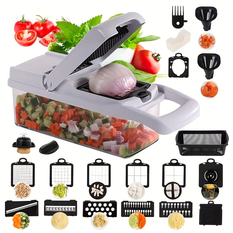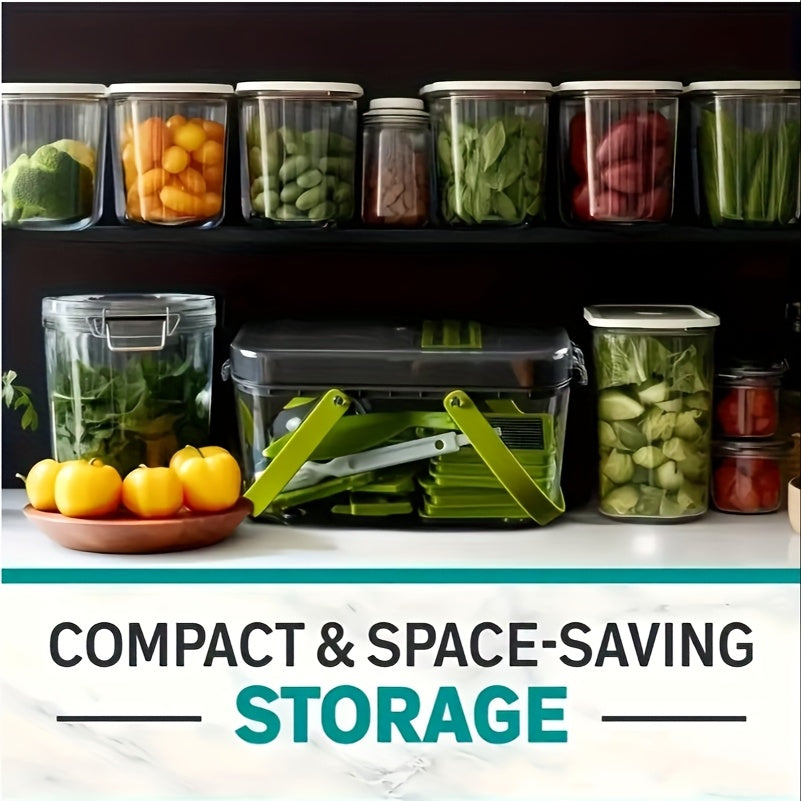 Multifunctional Vegetable Chopper and Slicer with Container - Manual Food Grater, Onion Mincer, Potato Shredder - Space-Saving Kitchen Gadget for Effortless Meal Prep, Dishwasher Safe, BPA-Free Plastic, Includes Multiple Blade Attachments for Various Food