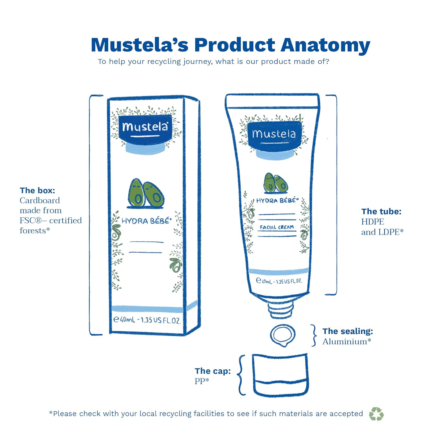 Mustela Hydra Bebe Face Cream – Daily Baby Moisturizer with Natural Avocado, Jojoba Oil & Shea Butter - 1.35 fl. oz. - Packaging may vary