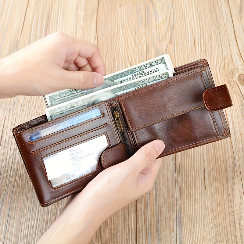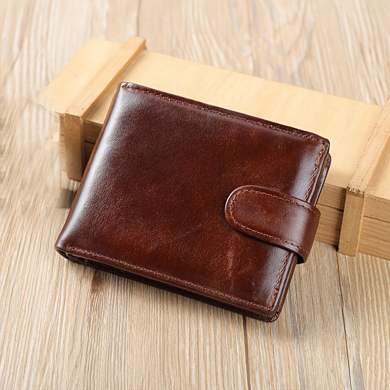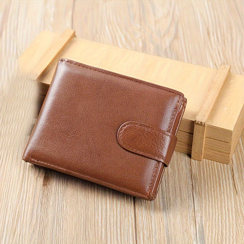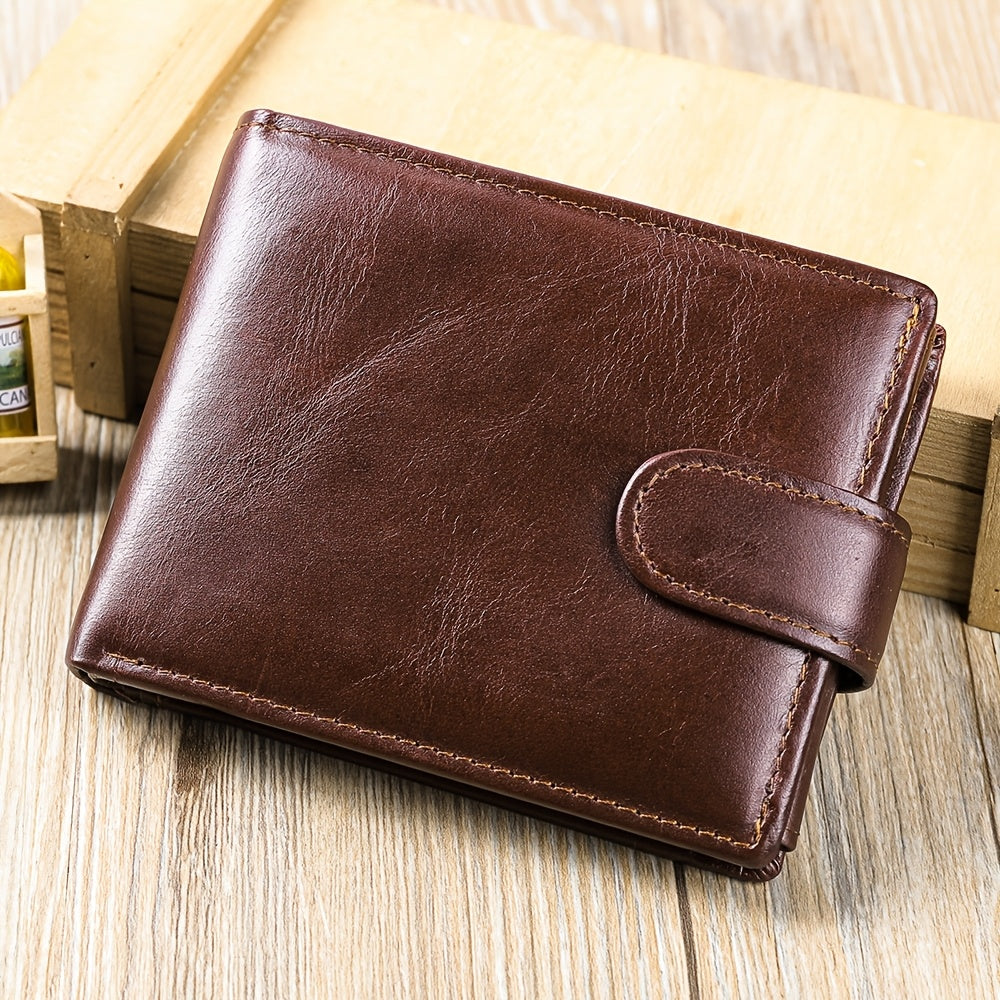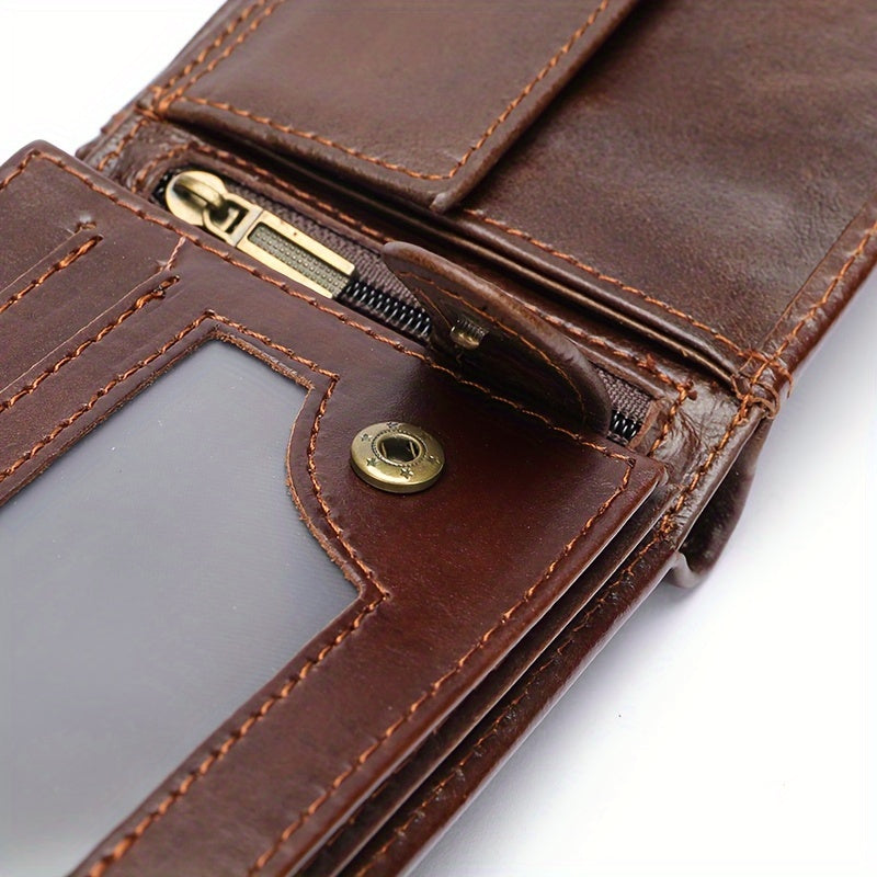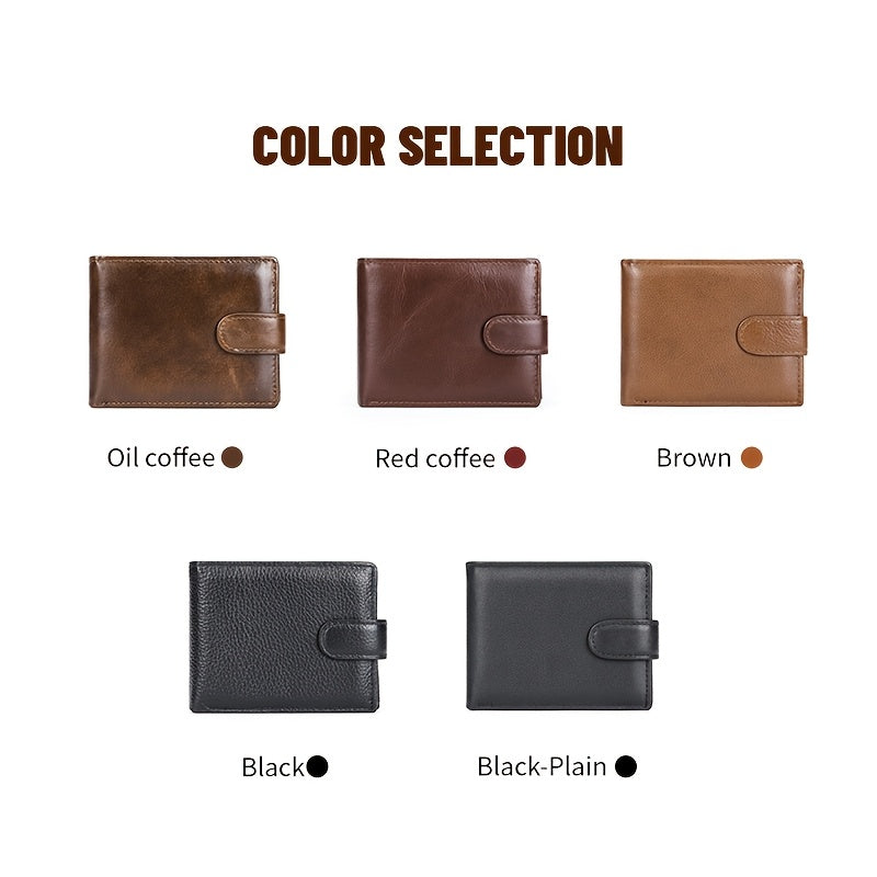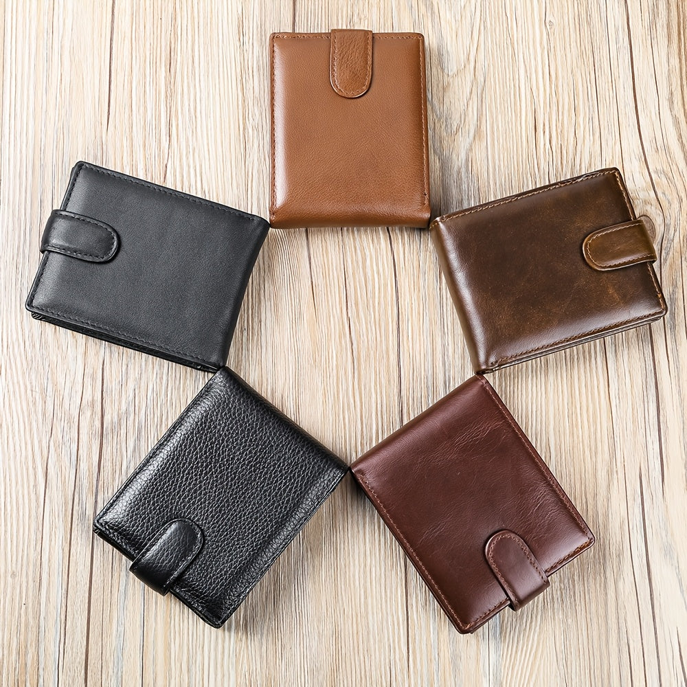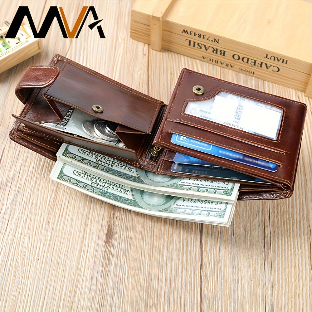 MVA Men'S Casual Leather Wallet, Top Layer Cowhide with Polyester Lining, Solid Color, Compact Multi-Card Holder with Coin Pocket and Photo Slot