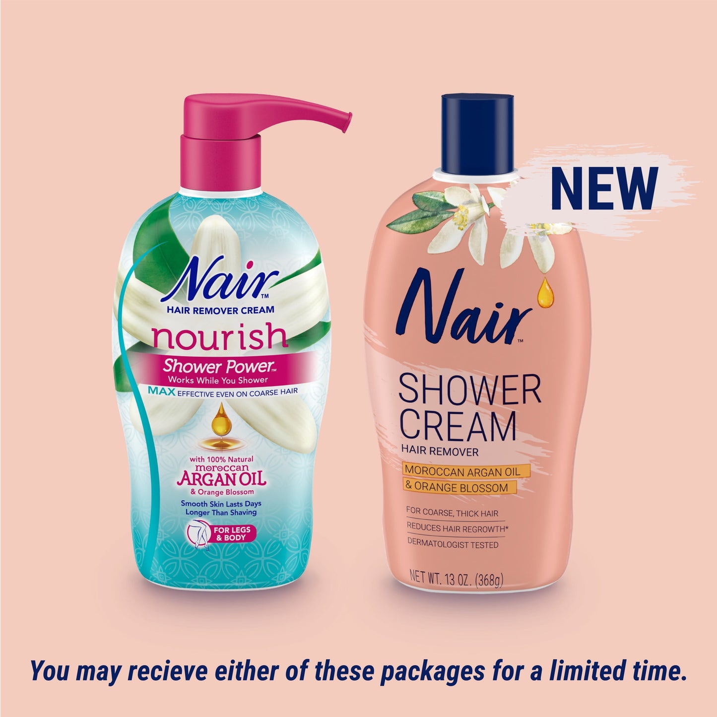 Nair Shower Cream Hair Remover, Moroccan Argan Oil & Orange Blossom, For Coarse Thick Hair, 13 oz