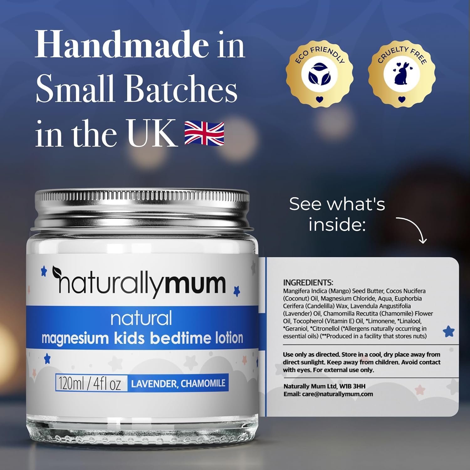 CRUELTY FREE & MADE IN UK: Every jar of Kids Sleep Lotion is handmade with love in the UK! We also use 100% eco-friendly, recyclable packaging.