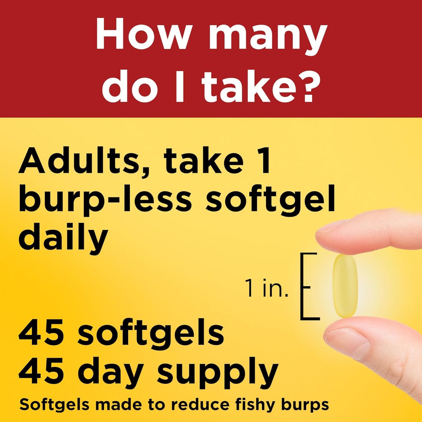 Nature Made Burp Less Ultra Omega 3 Fish Oil 1400 mg, Fish Oil Supplements, Omega 3 Supplement for Healthy Heart, Brain and Eyes Support, One Per Day, 45 Softgels