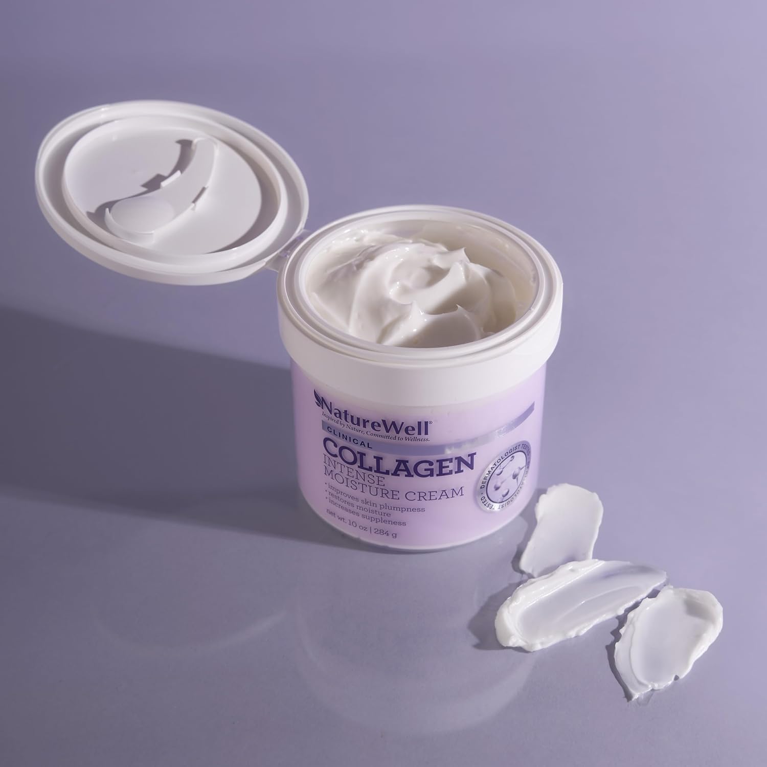 NATURE WELL Clinical Collagen Peptide Intense Moisture Cream for Face, Neck, & Body, Anti-Aging Cream that Hydrates, Plumps, Restores Moisture, and Increases Suppleness, 10 Oz