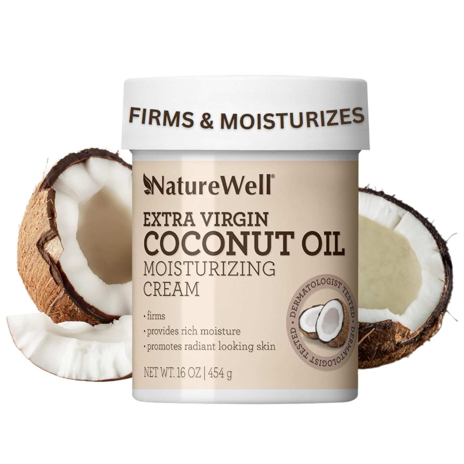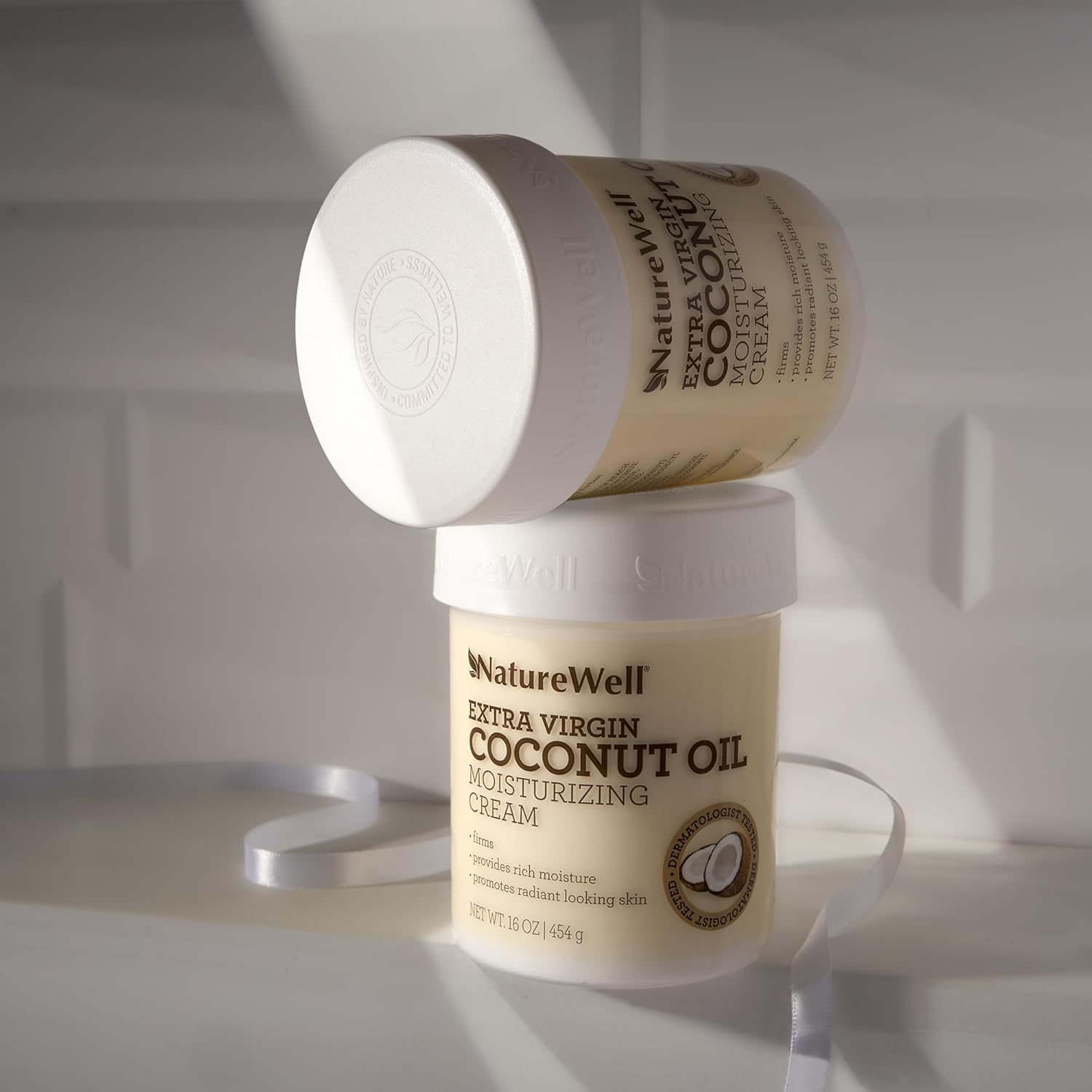 NATURE WELL Extra Virgin Coconut Oil Moisturizing Cream for Face, Body, & Hands, Anti Aging, Firming, Restores Skin's Moisture Barrier, Provides Intense Hydration For Dry & Dull Skin, 16 Oz