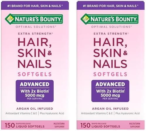 Nature's Bounty Advanced Hair, Skin & Nails, Argan-Infused Vitamin Supplement with Biotin and Hyaluronic Acid, 150 Rapid Release Softgels (Pack of 2)