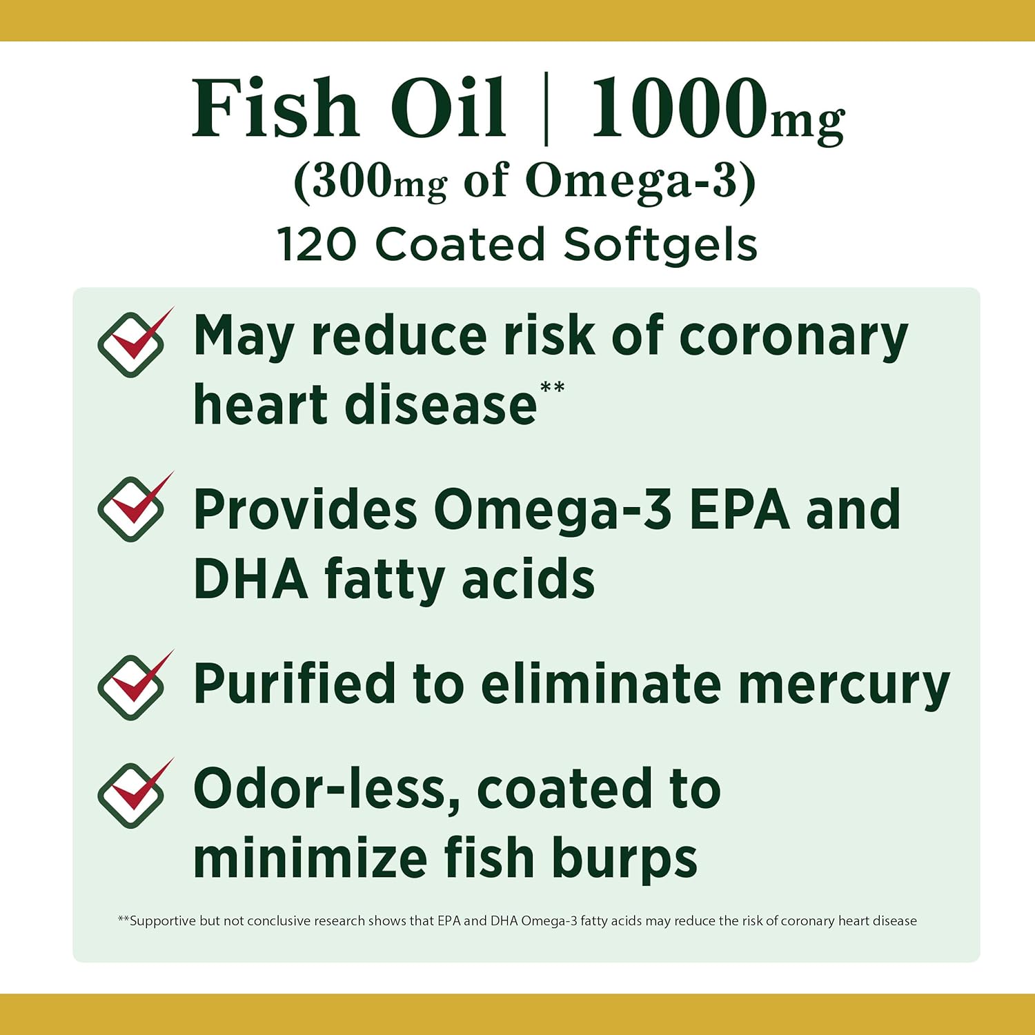 FOR YOUR HEART 120-count, 1000mg, 300mg of Omega-3 Fish Oil Softgels.