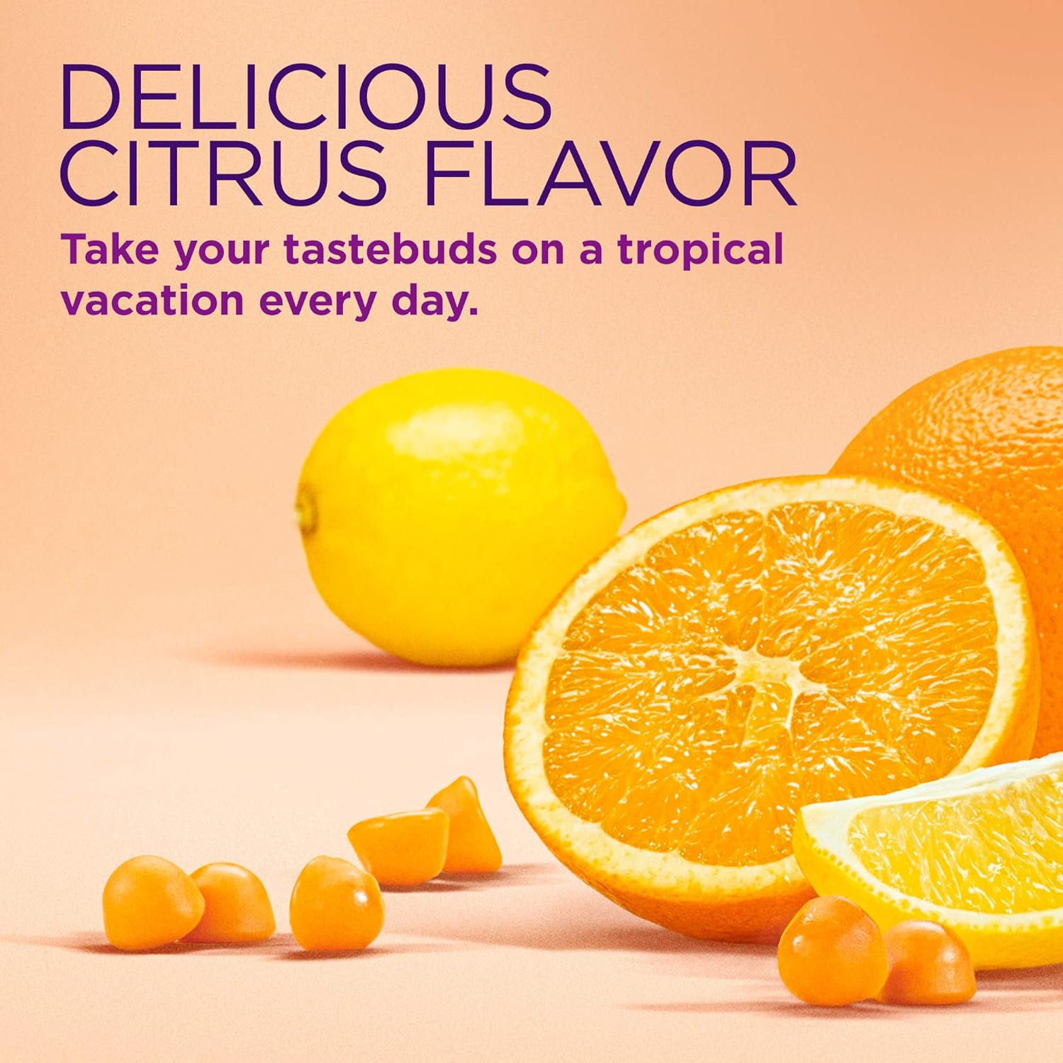 DELICIOUS TROPICAL CITRUS FLAVORED GUMMIES Delicious tropical citrus gummies are laboratory tested and contain no milk; no lactose; no soy; no gluten; no wheat; no yeast; no fish