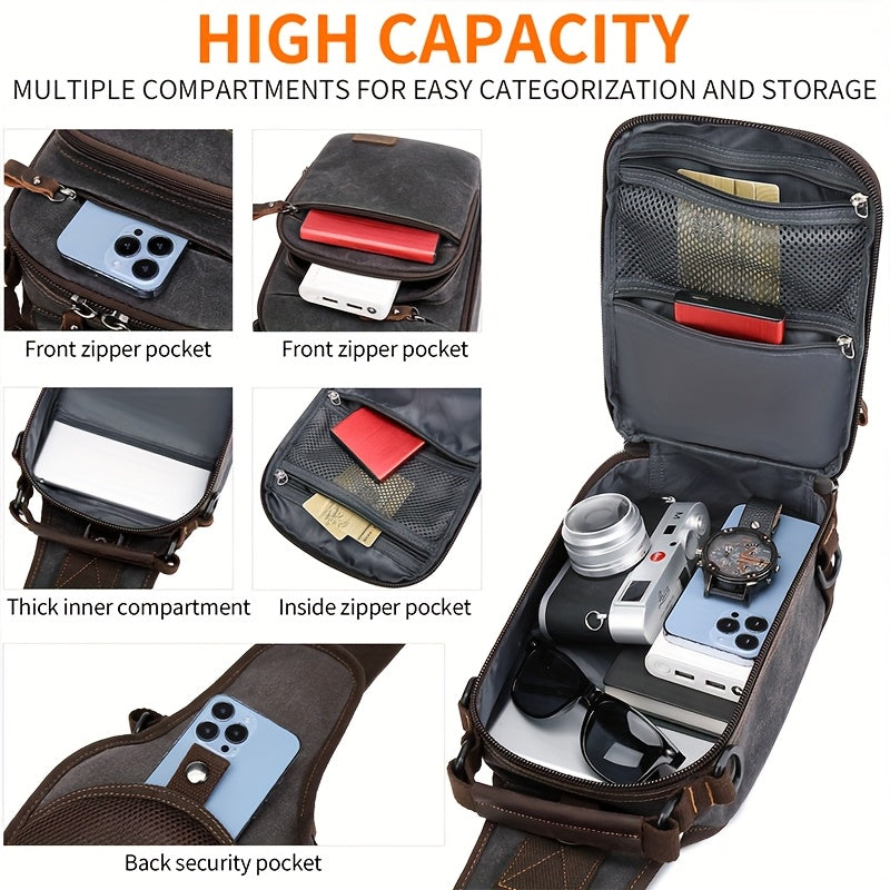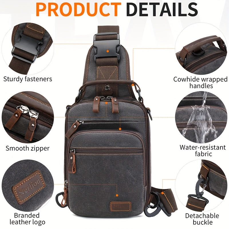 Nerlion Men's Waxed Canvas Sling Bag - Waterproof, Casual Crossbody Bag for Daily Use