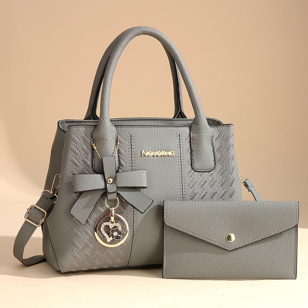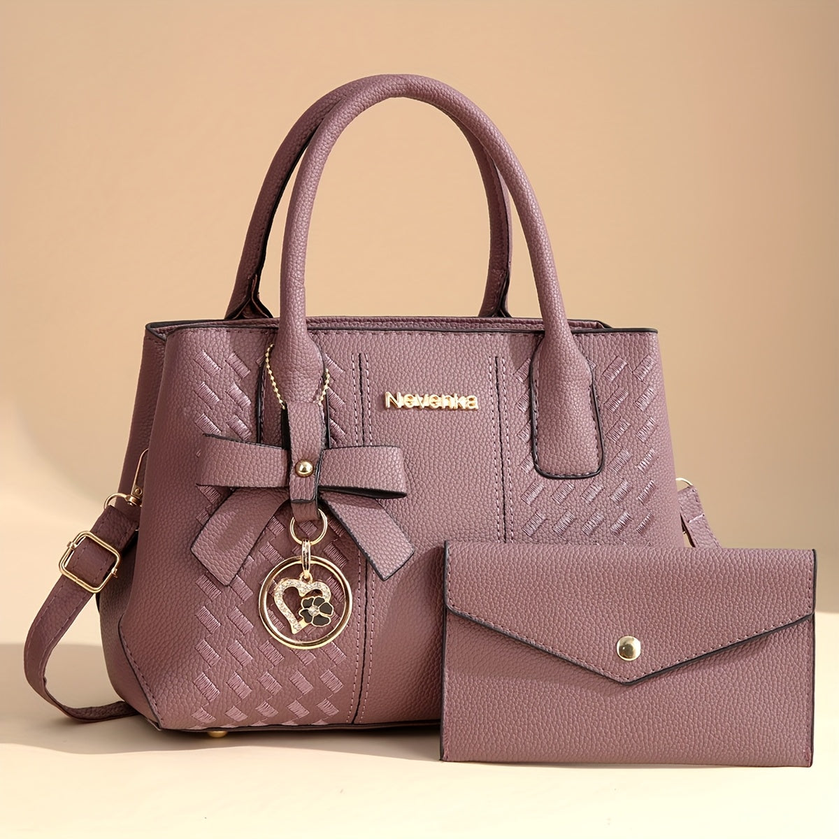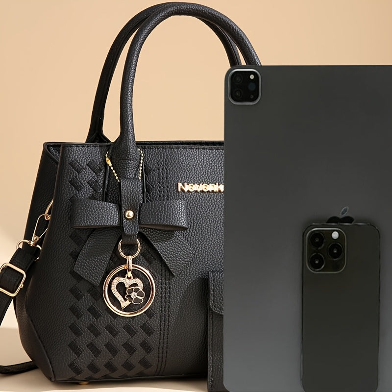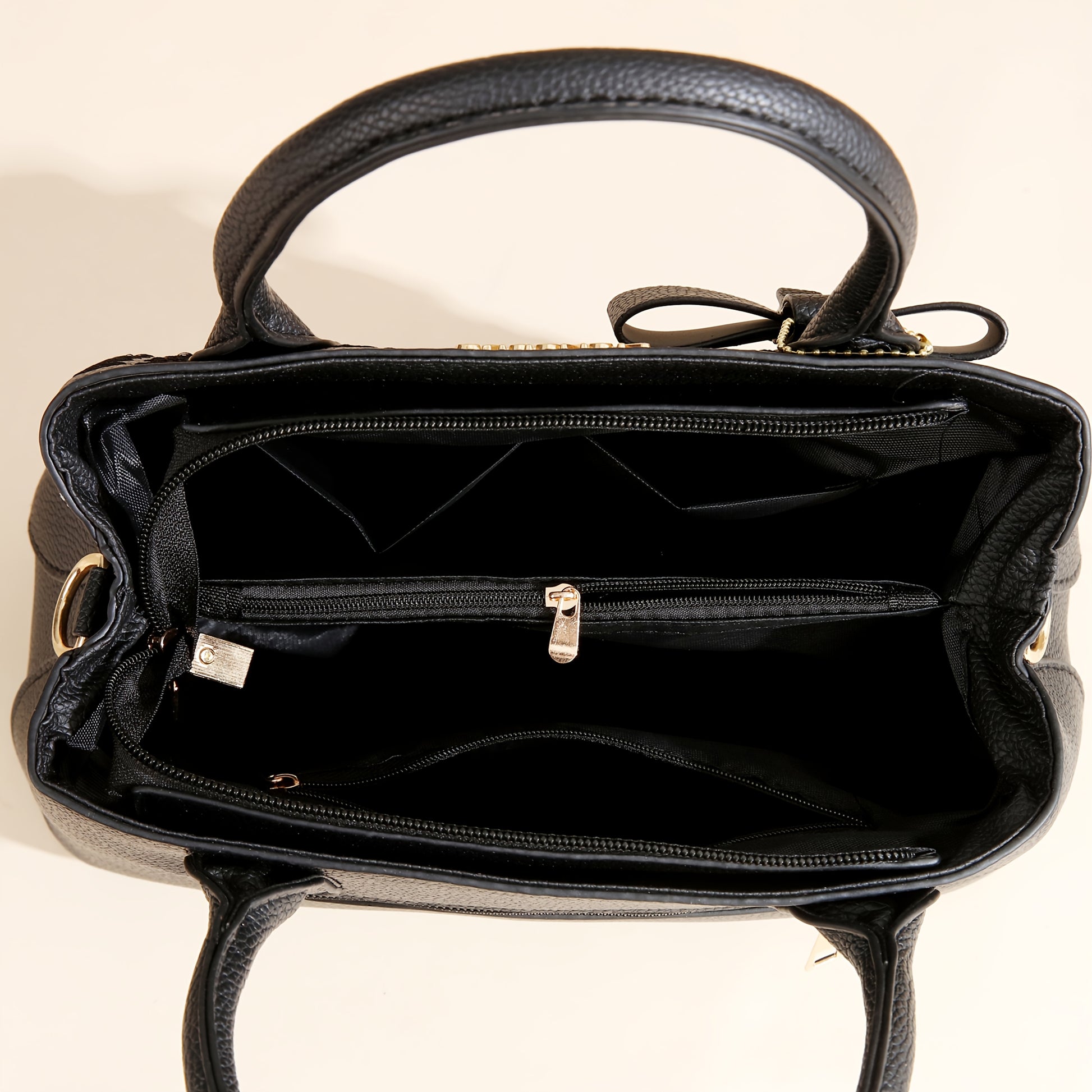 Neutral Style Large Shoulder Bag, Black, Solid Color, Zipper Closure, Polyester Lining, Removable Strap, Edge Paint, with Clutch, for Women, Mother'S Day, Family, Multi-piece Set