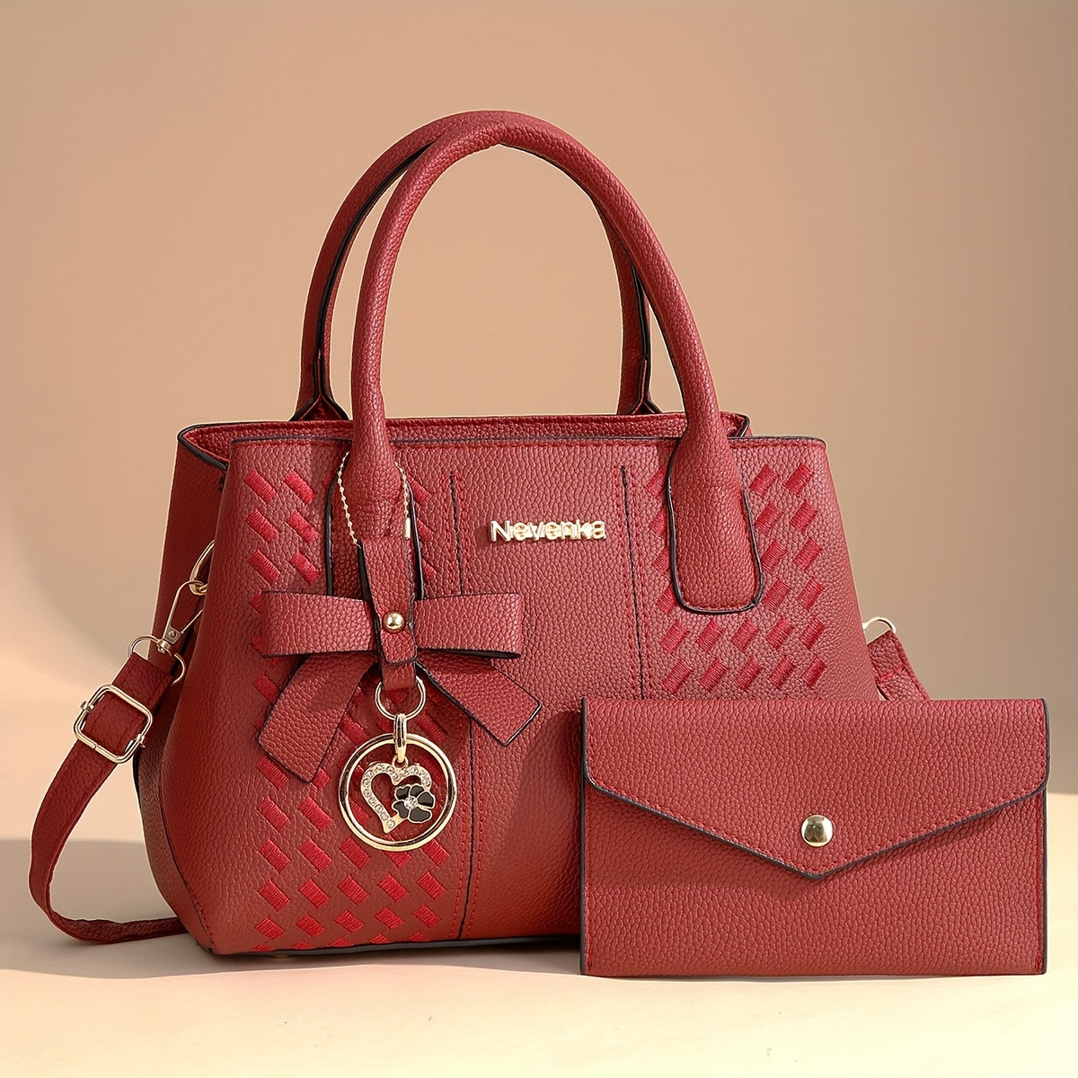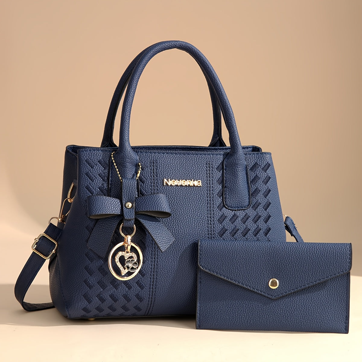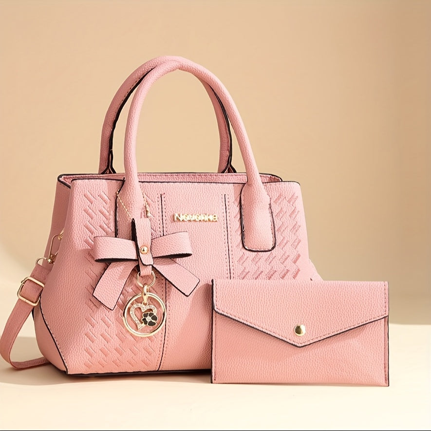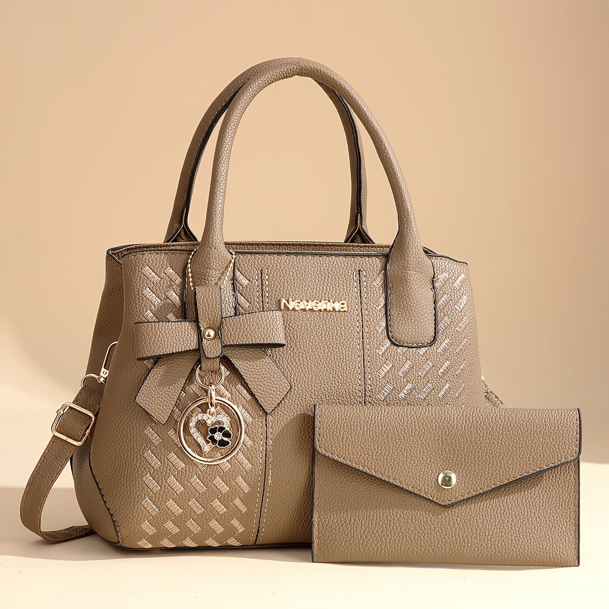 Neutral Style Large Shoulder Bag, Black, Solid Color, Zipper Closure, Polyester Lining, Removable Strap, Edge Paint, with Clutch, for Women, Mother'S Day, Family, Multi-piece Set