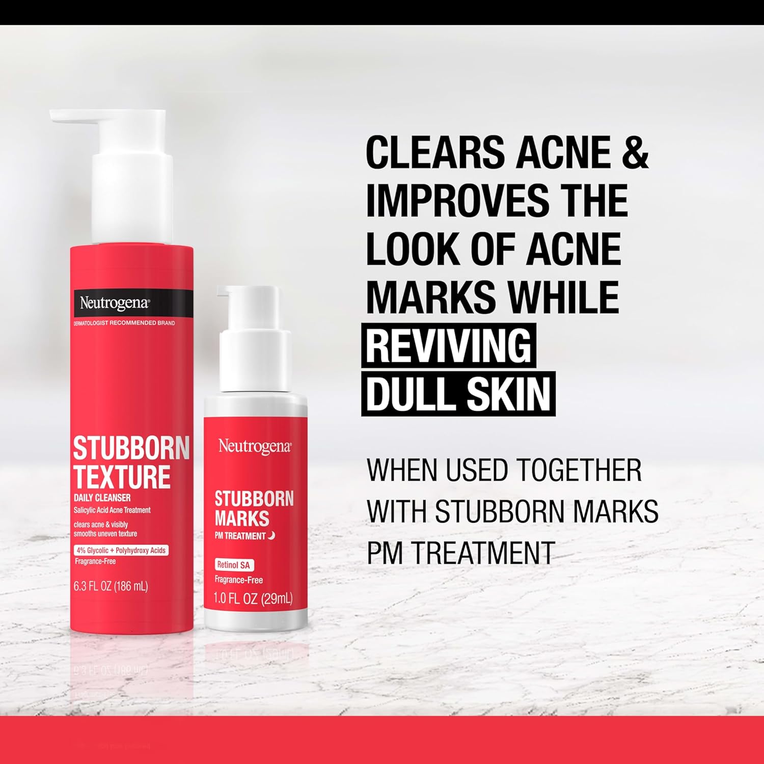 Neutrogena Stubborn Texture Daily Acne Facial Cleanser, Salicylic Acid Face Wash + Glycolic & Polyhydroxy Acids, Fragrance-Free, 6.3 fl. oz