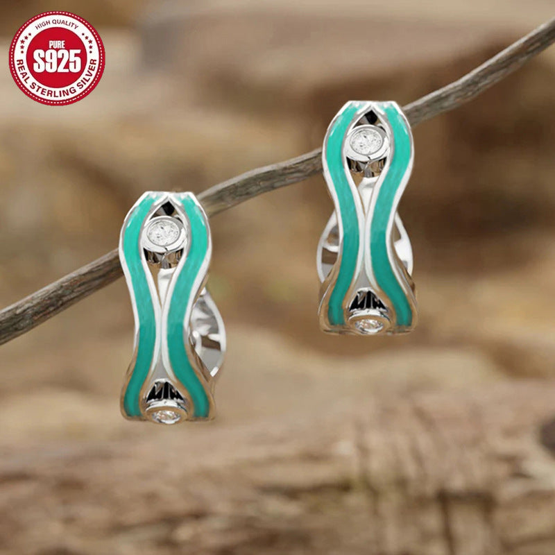 New 925 sterling silver women's earrings, oil painting line wave jewelry, geometric retro new Chinese-style earrings, simple design yet exuding an air of nobility.