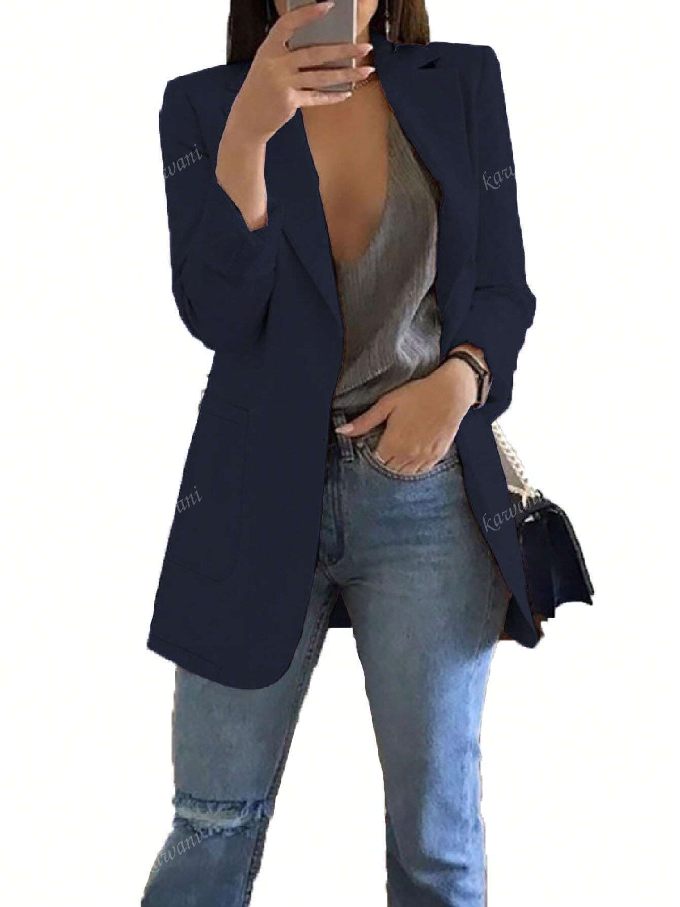 New Fashion European Style Casual Blazer Collar Slim Fit Open Front Jacket For Women, Spring/Autumn