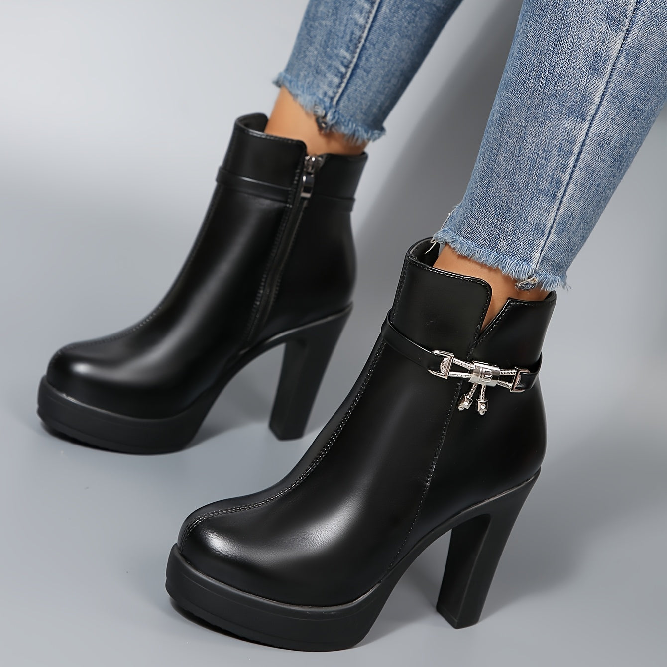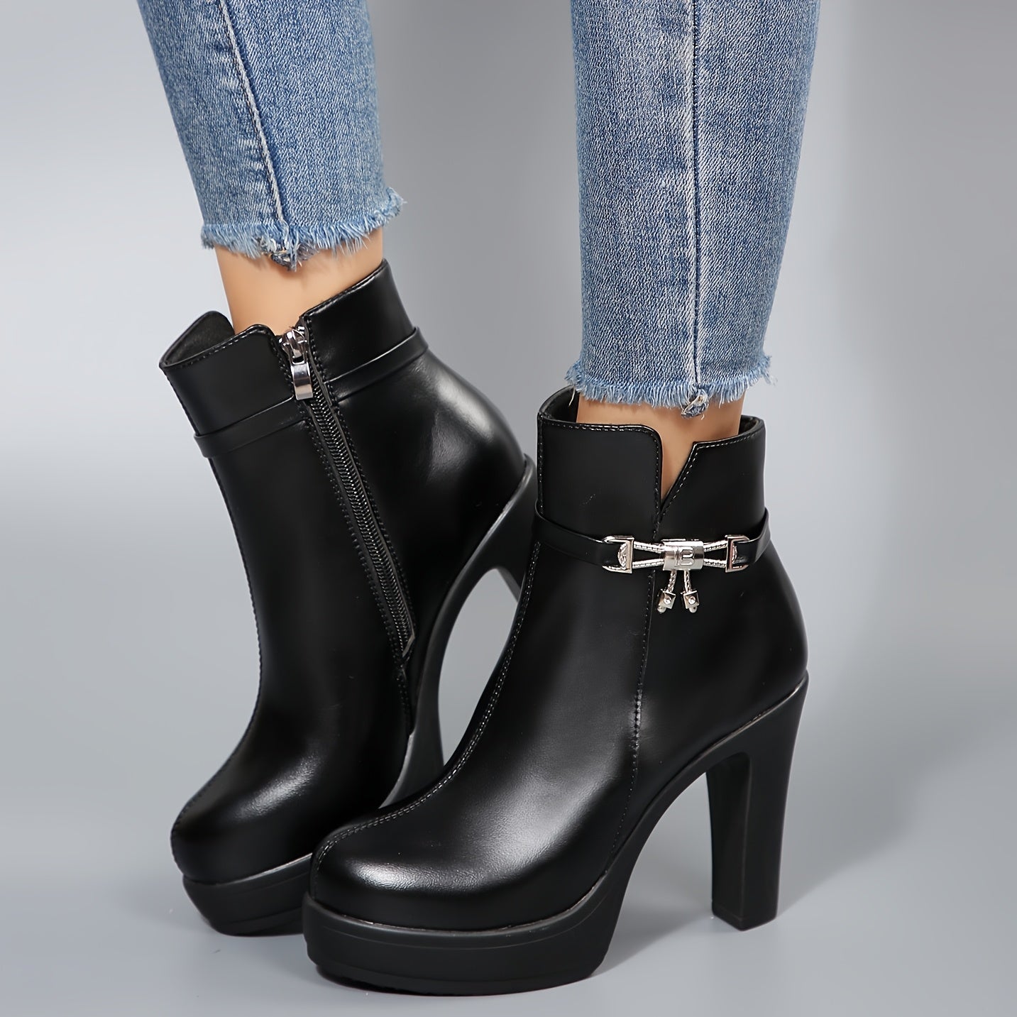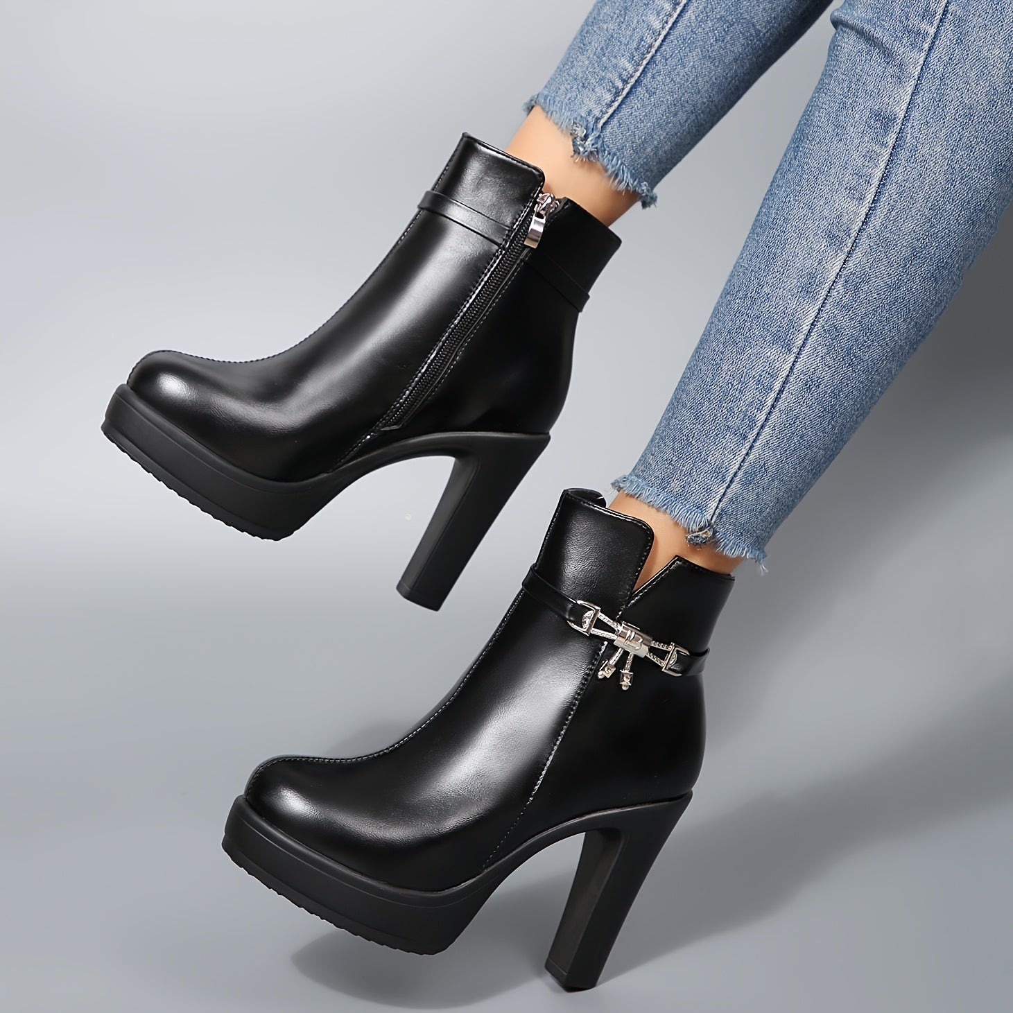 New Pendant Decor High Heel High Quality Platform Short Boot with Side Zipper for Women's Fashionable Outdoor Wear