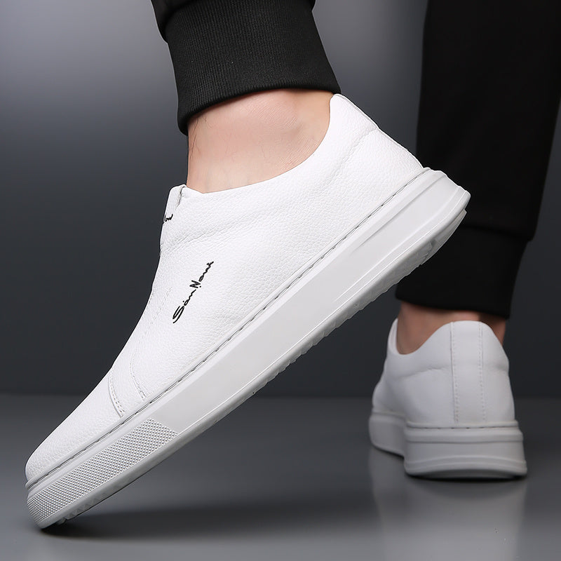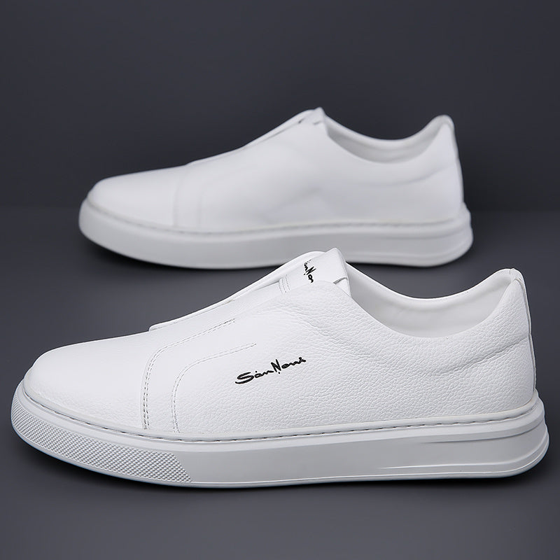 New Trendy Minimalist Korean Style Men's White Sneakers - Large Size Casual Sports Shoes, Flat Round Toe Low-Top Anti-Slip High Quality Breathable Business Slip-Ons with 9 Sizes to Choose From, Includes 1 Pair + 1 Premium Storage Bag (2pcs Set)