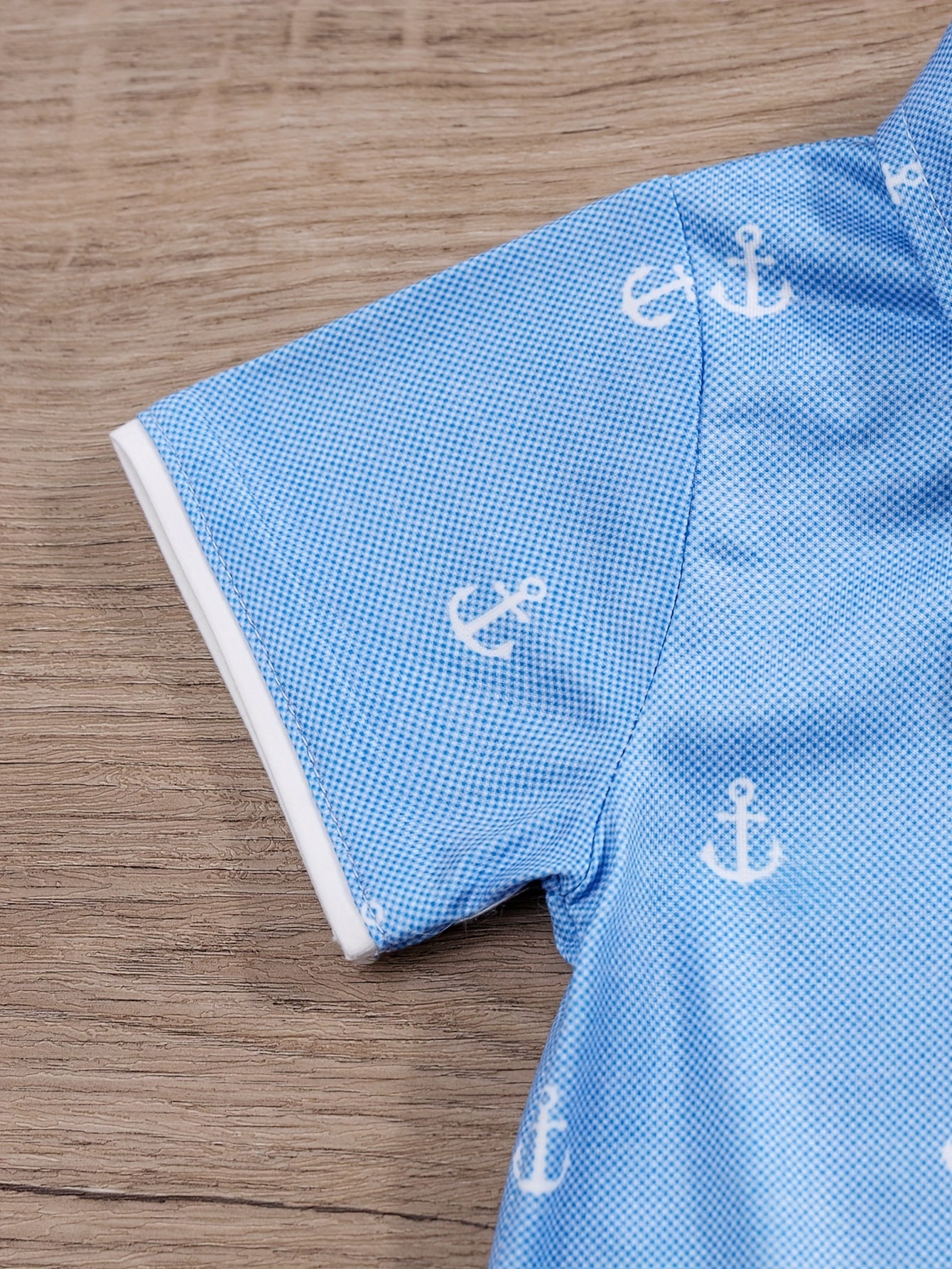 Newborn Baby Boy and Girl Summer Shirt with Anchor Print, Short Sleeve Children's Triangle Body Suit + Diaper Pants Two-Piece Set