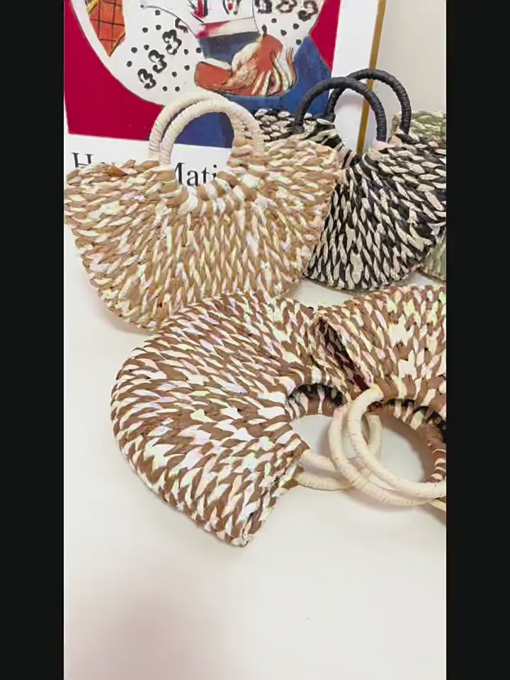 Niche Semicircle Portable Straw Weaved Bag Retro Color Hand Carrying Straw Bag Woven Bag Women Seaside Vacation Beach Bag