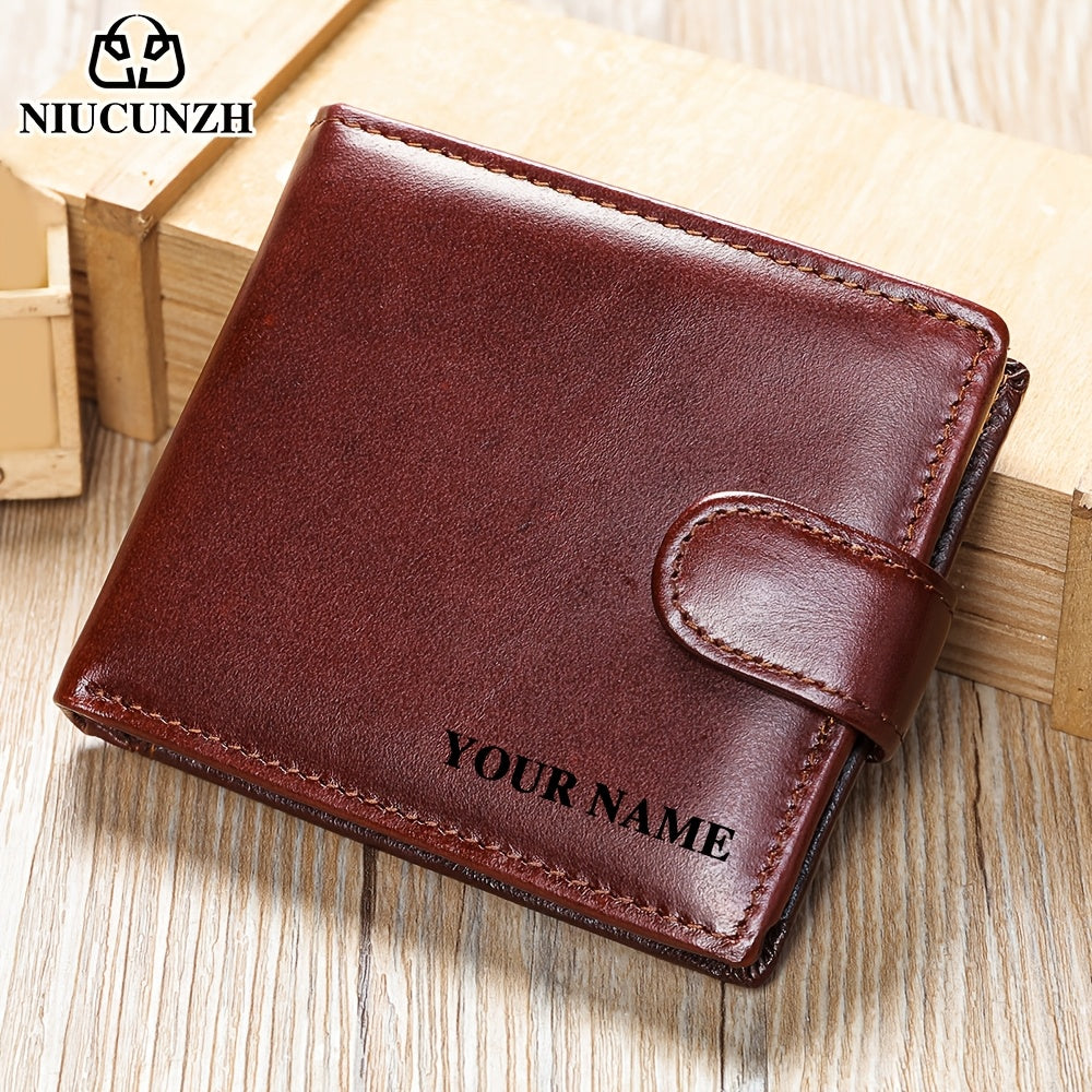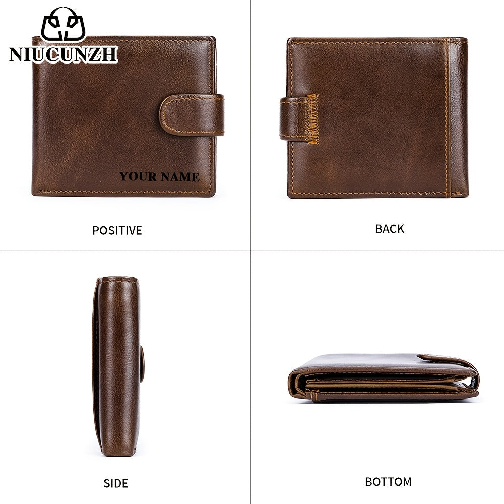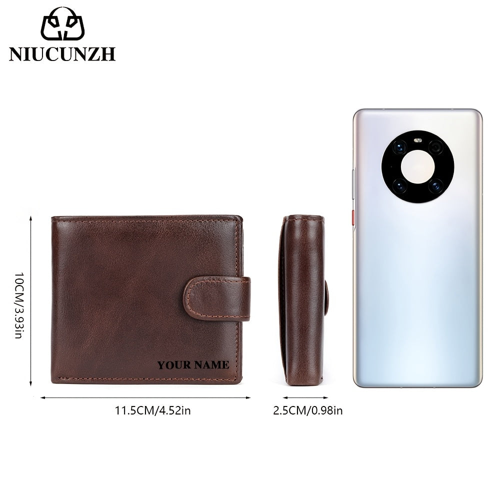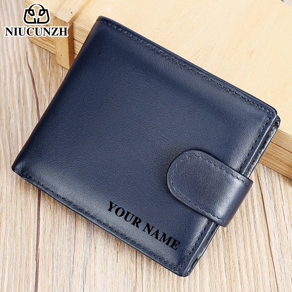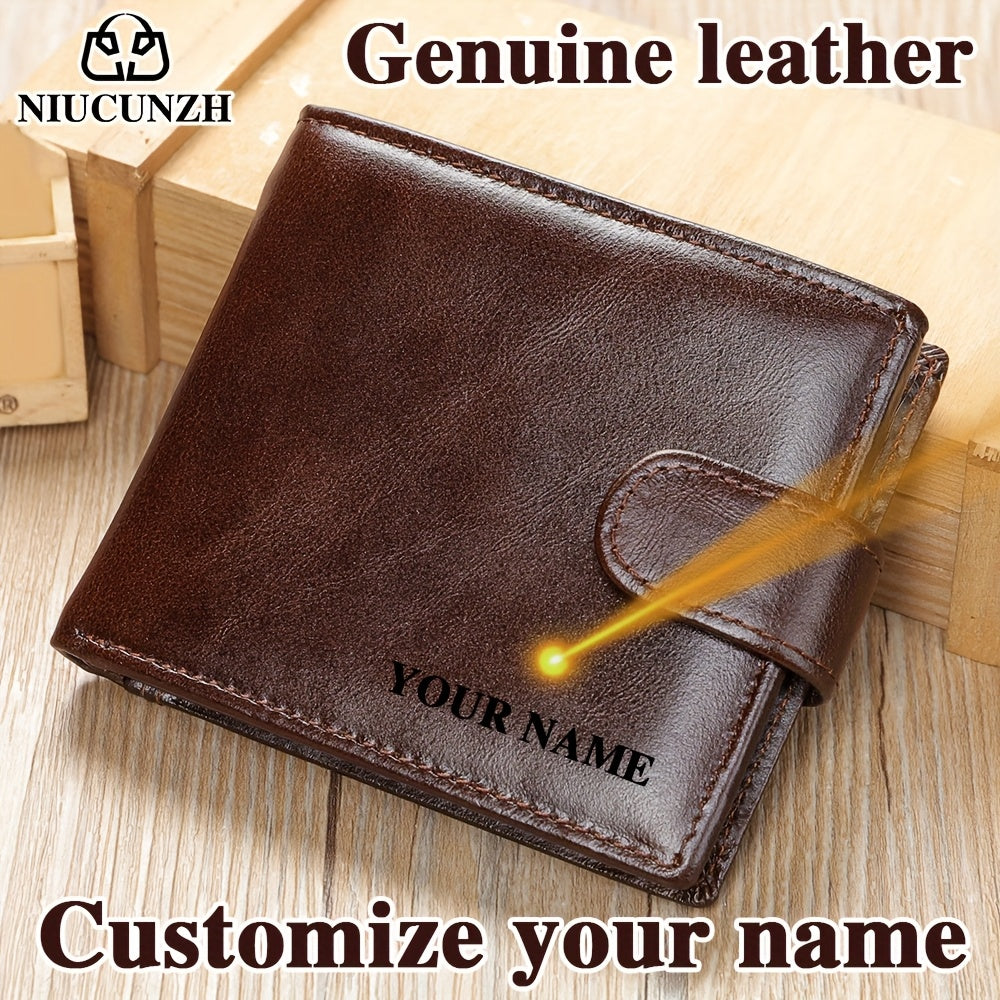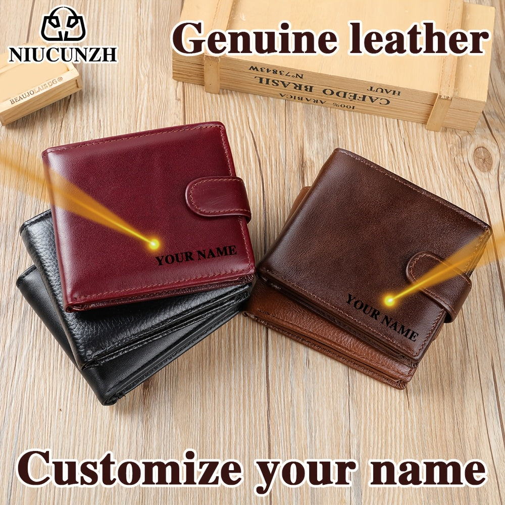 NIUCUNZH Genuine Leather Wallet, Top-Grain Cowhide, Casual Style, Engraved Custom Name, Multiple Card Slots, Ideal for Anniversary & Holiday Gifts, Personalized Souvenir - Coffee/Black/Blue