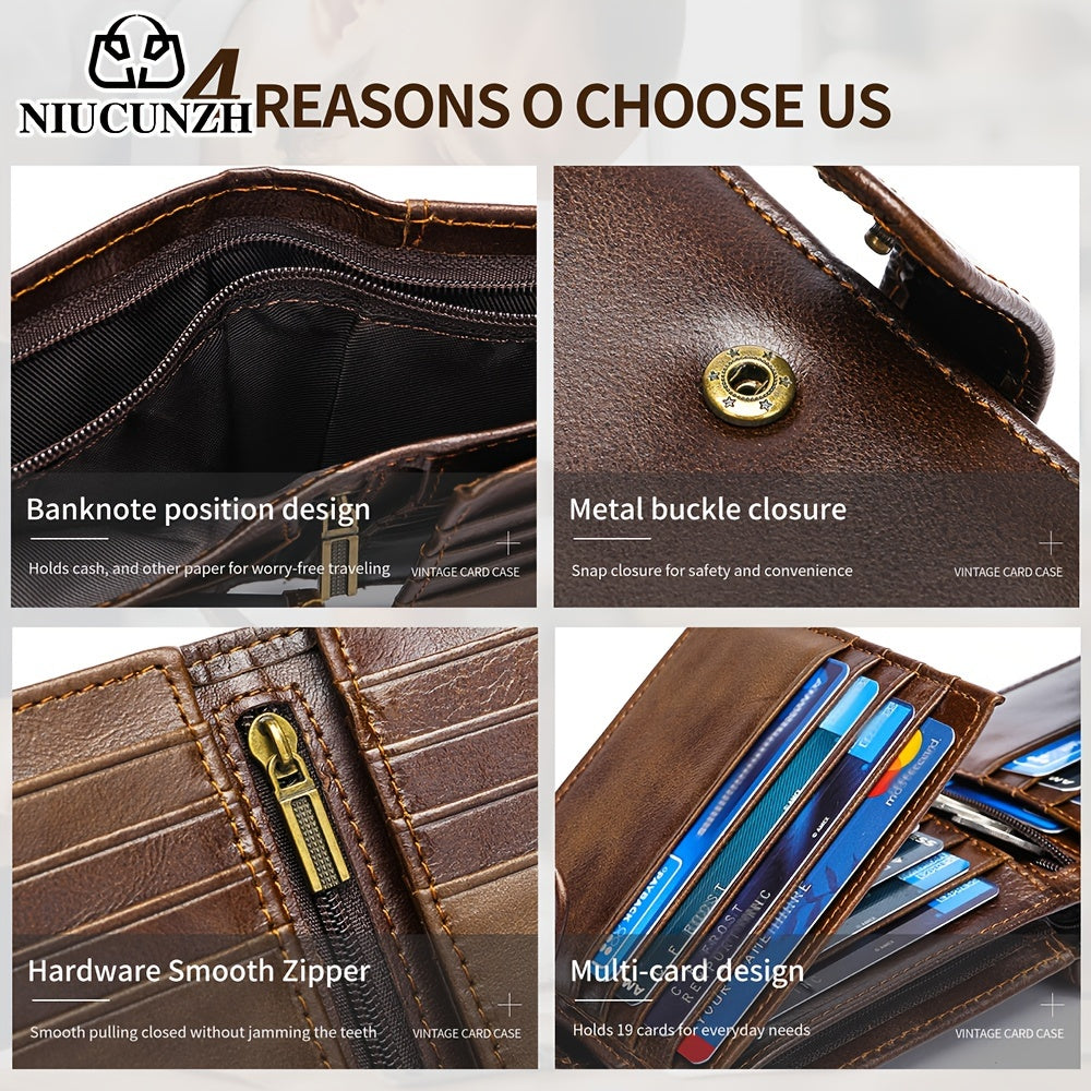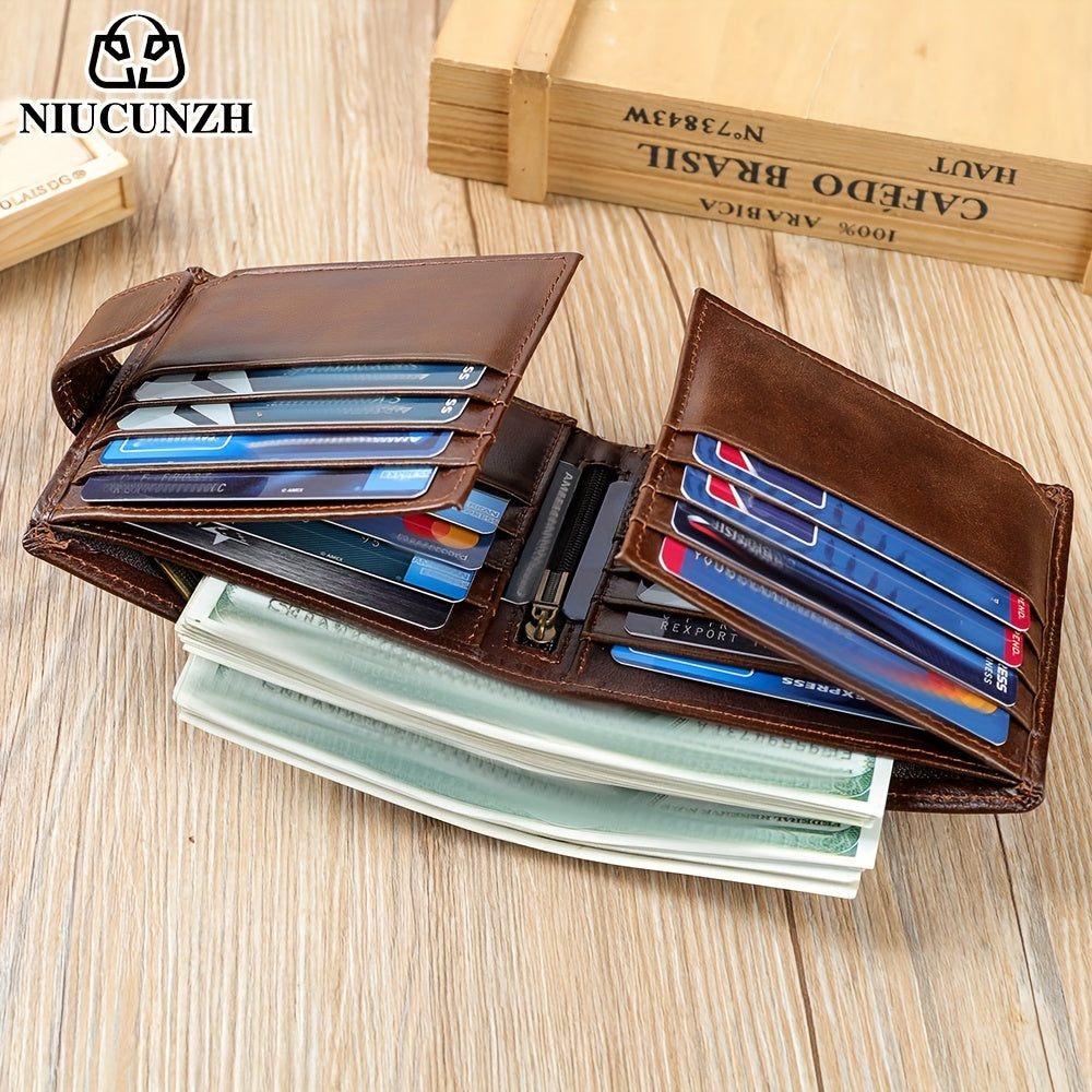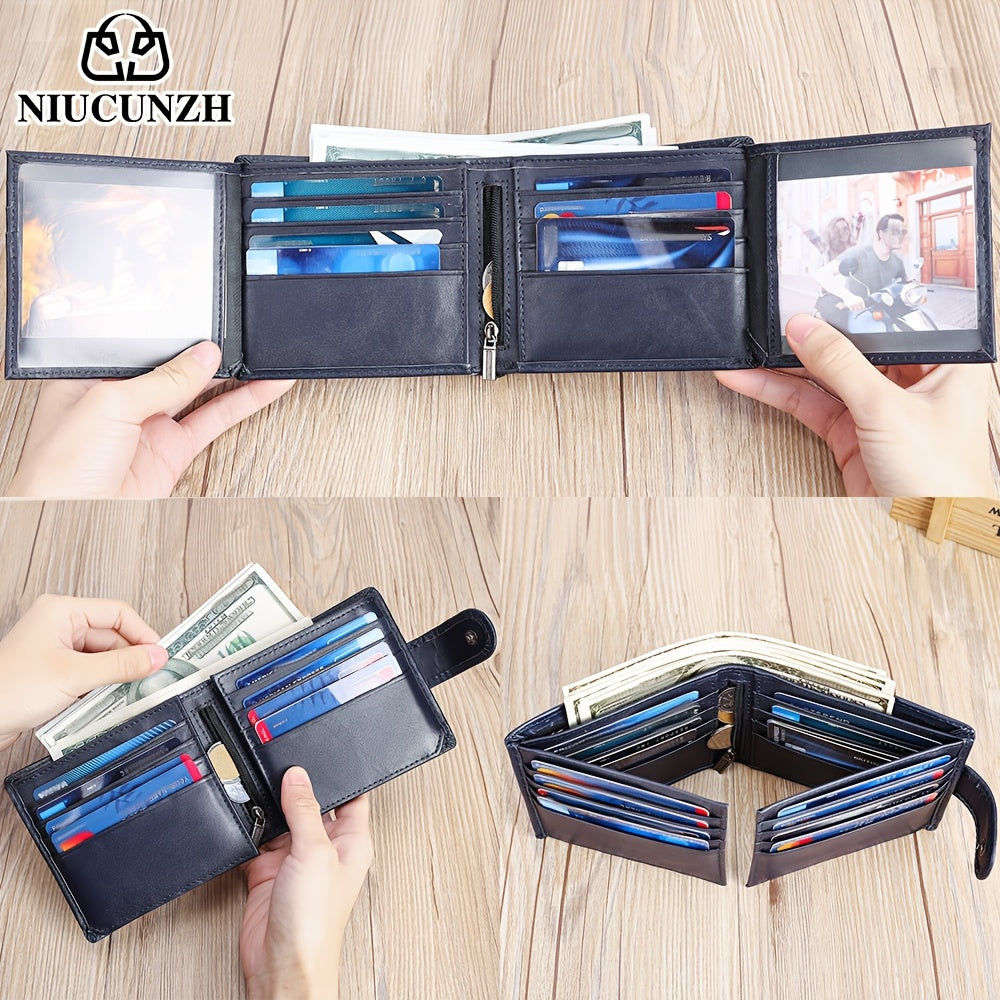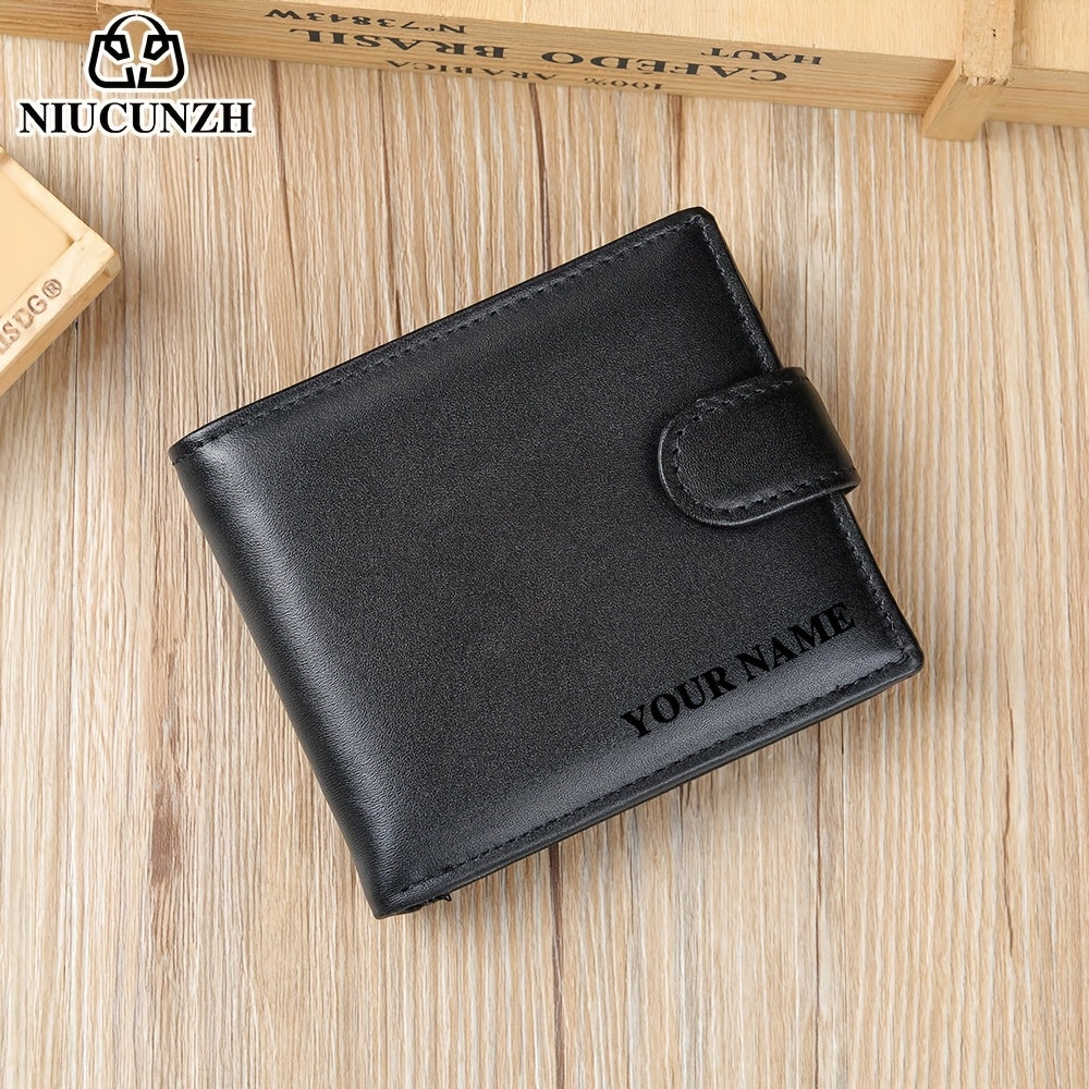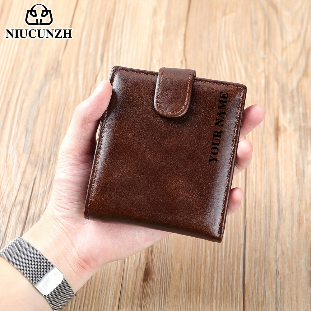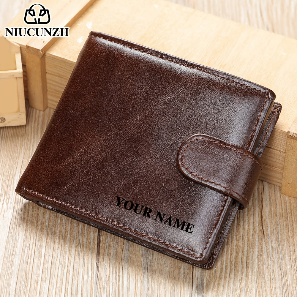 NIUCUNZH Genuine Leather Wallet, Top-Grain Cowhide, Casual Style, Engraved Custom Name, Multiple Card Slots, Ideal for Anniversary & Holiday Gifts, Personalized Souvenir - Coffee/Black/Blue