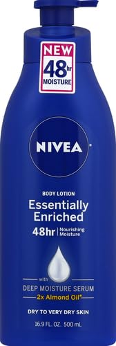NIVEA Essentially Enriched Body Lotion for Dry Skin, 48-Hour Moisturizing Lotion with Deep Nourishing Serum and Almond Oil, 16.9 Fl Oz Pump Bottle