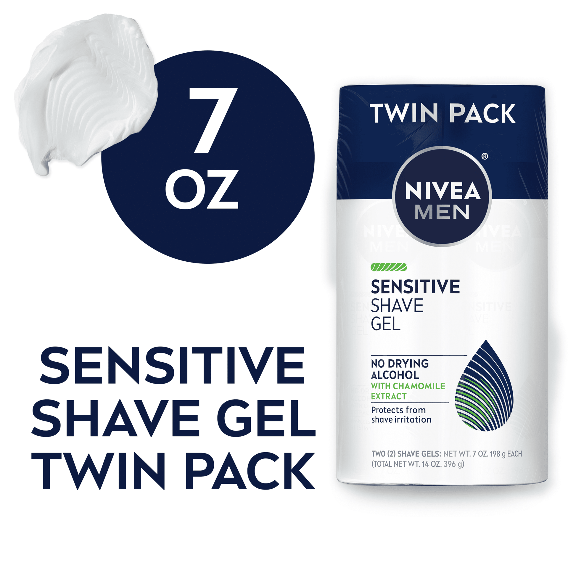 NIVEA MEN Sensitive Shave Gel with Vitamin E, Soothing Chamomile and Witch Hazel Extracts, 7 oz Can, 2 pack