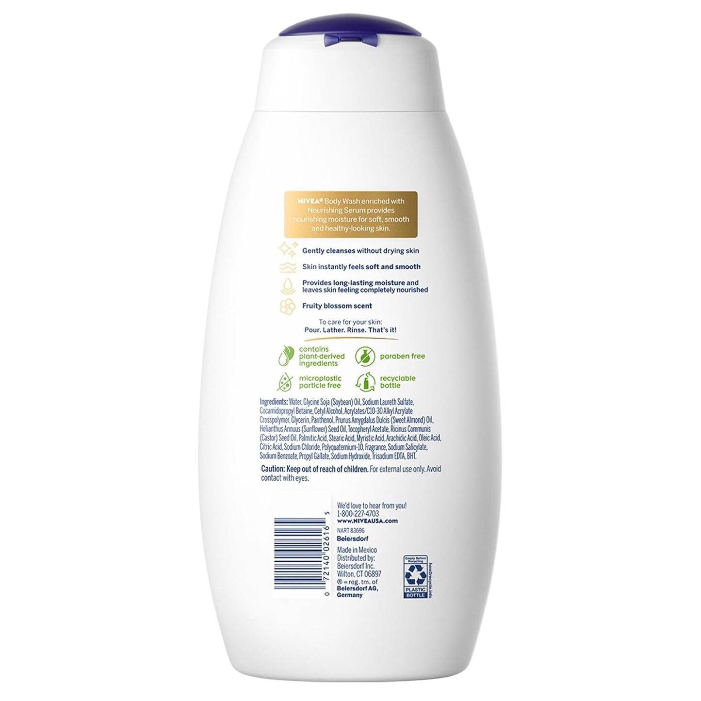 INCLUDES: One (1) 20 fluid ounce bottle of NIVEA Nourishing Botanical Blossom Body Wash, Moisturizing Body Wash with Nourishing Serum