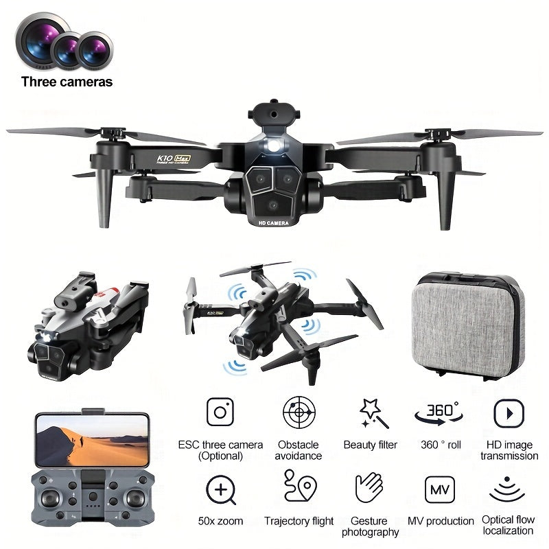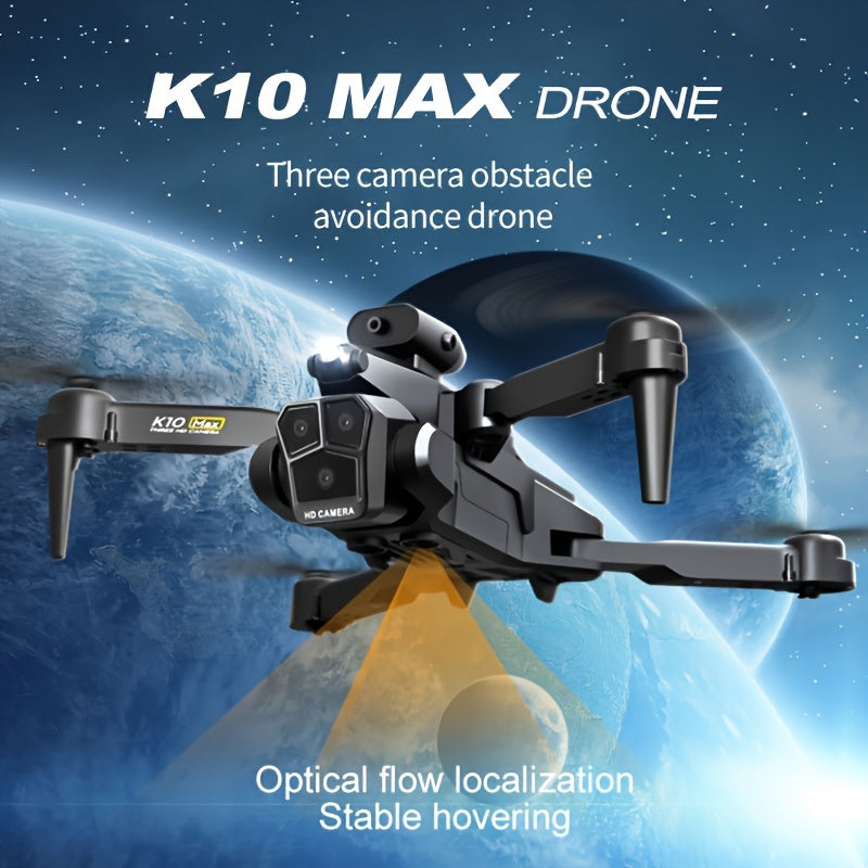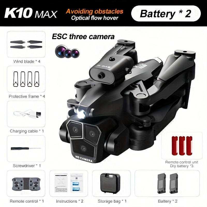 Nouveau drone quadricoptère K10MAX longue portée avec double caméra HD pour adultes, décollage et atterrissage à une touche, maintien d'altitude, roulement acrobatique à 360°, avec 2 grandes batteries et poignée pour smartphone, drone RC adapté aux débuta