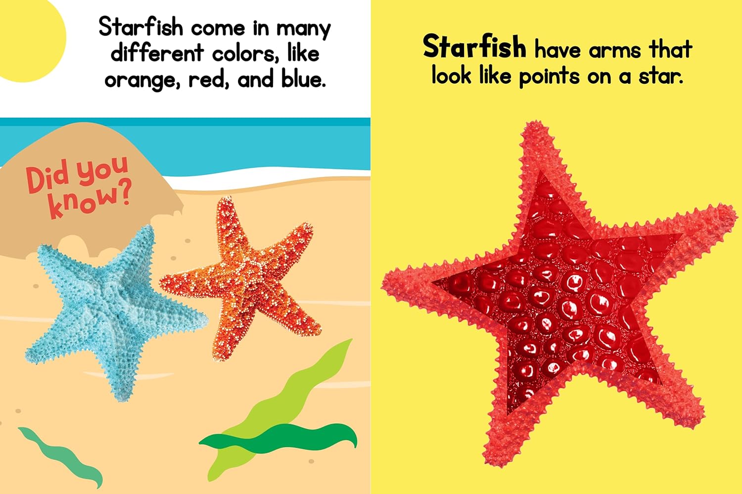- Real photography of a dolphin, seahorse, starfish, seal and more are shown in this toddler book