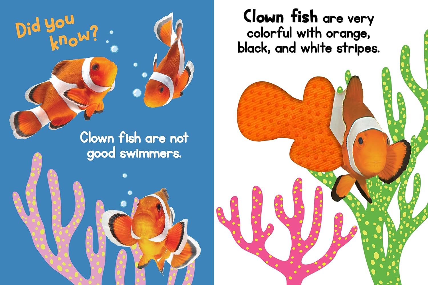 Explore the underwater world of creatures from sea turtles to clown fish in this touch and feel board book. Perfect for little hands to hold, this sensory board book features a variety of materials to touch and feel.